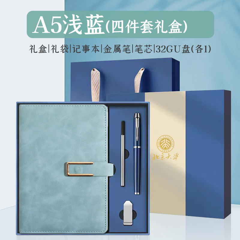 u-shaped buckle-4 suit-light blue [notebook + metal pen + refill + usb flash disk]]