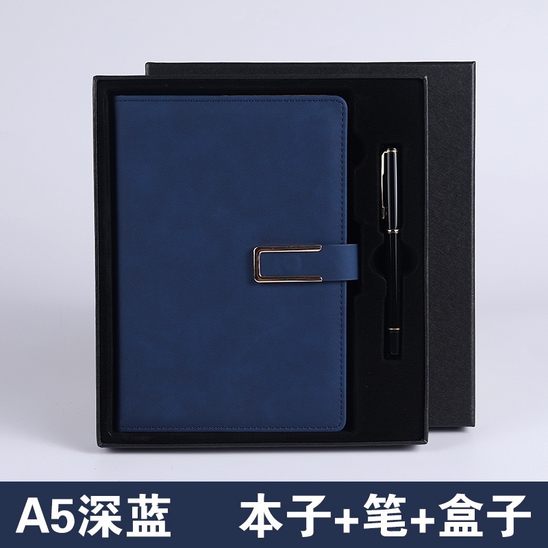 u-shaped buckle-2-piece set-dark blue [notebook + pen + gift box]]
