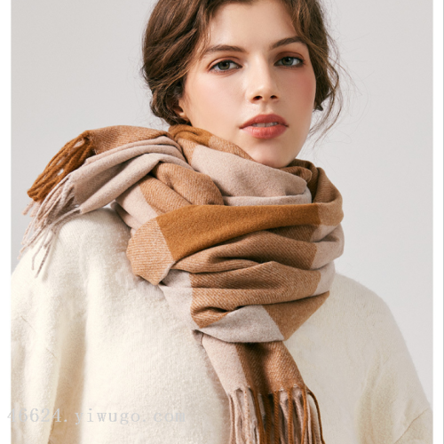 New model, in-stock model, 96 wool series, color-blocked wool check pattern, material (test report): 60% polyester, 20% acryl, 20% wool, size: 65*185, weight: 280 grams, item number: 96170330