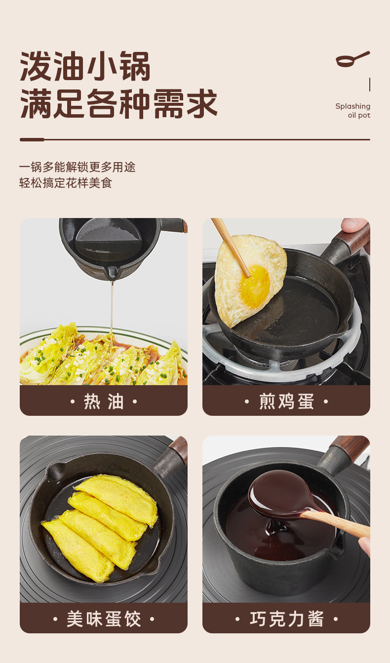 customized hot oil small pot drip oil cast iron small oil pan for egg dumpling fantastic product household mini omelette pan oil pan