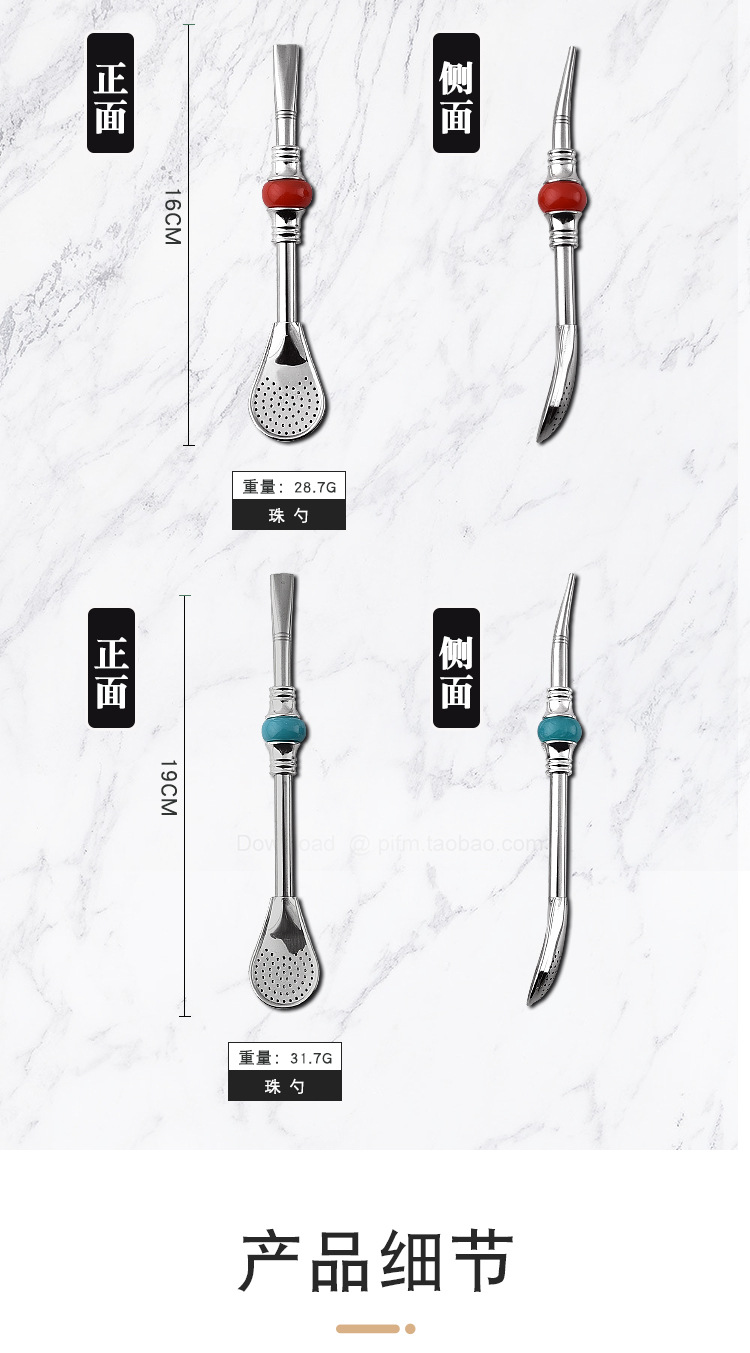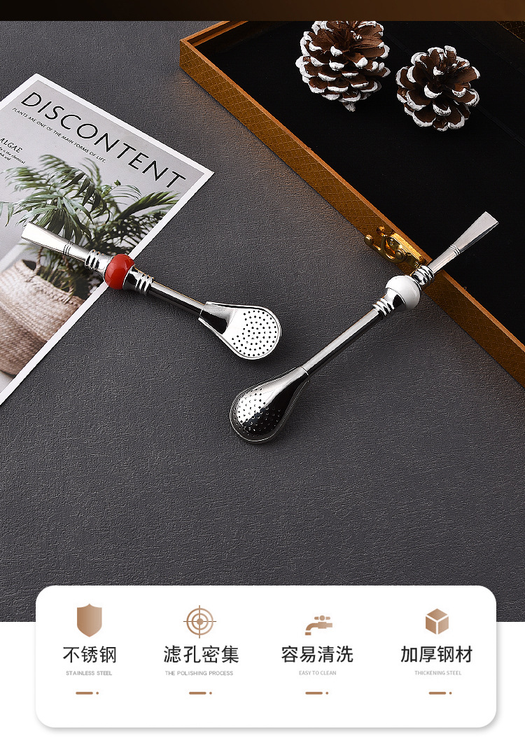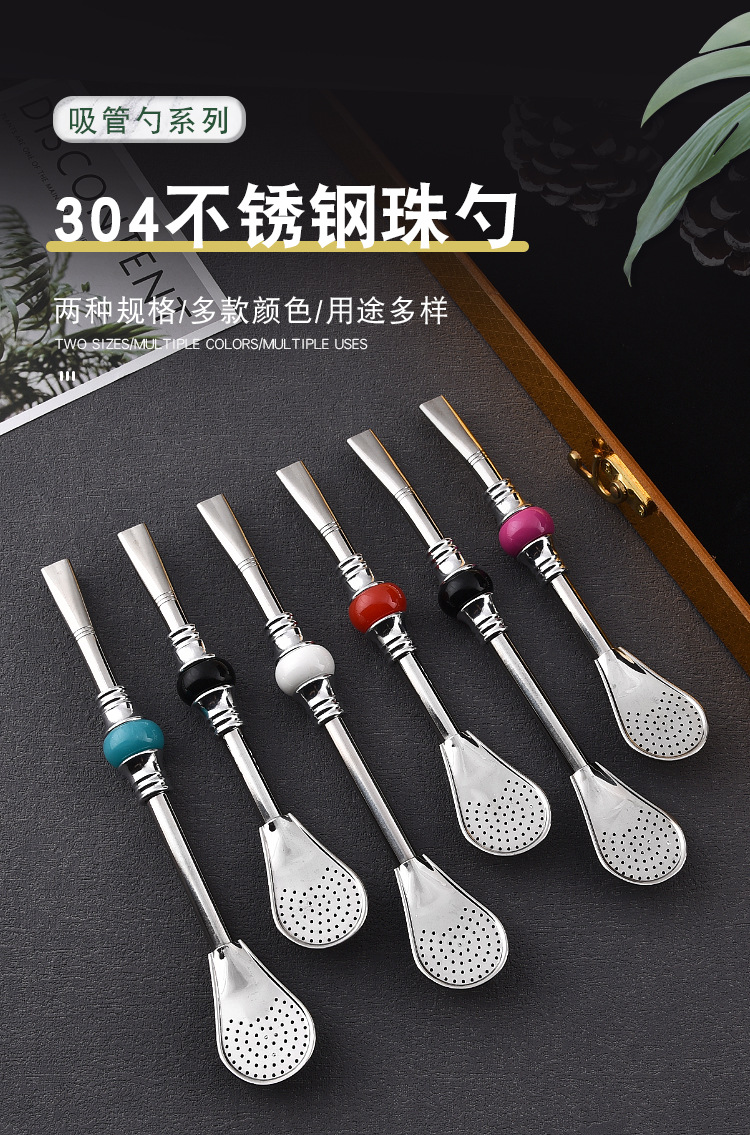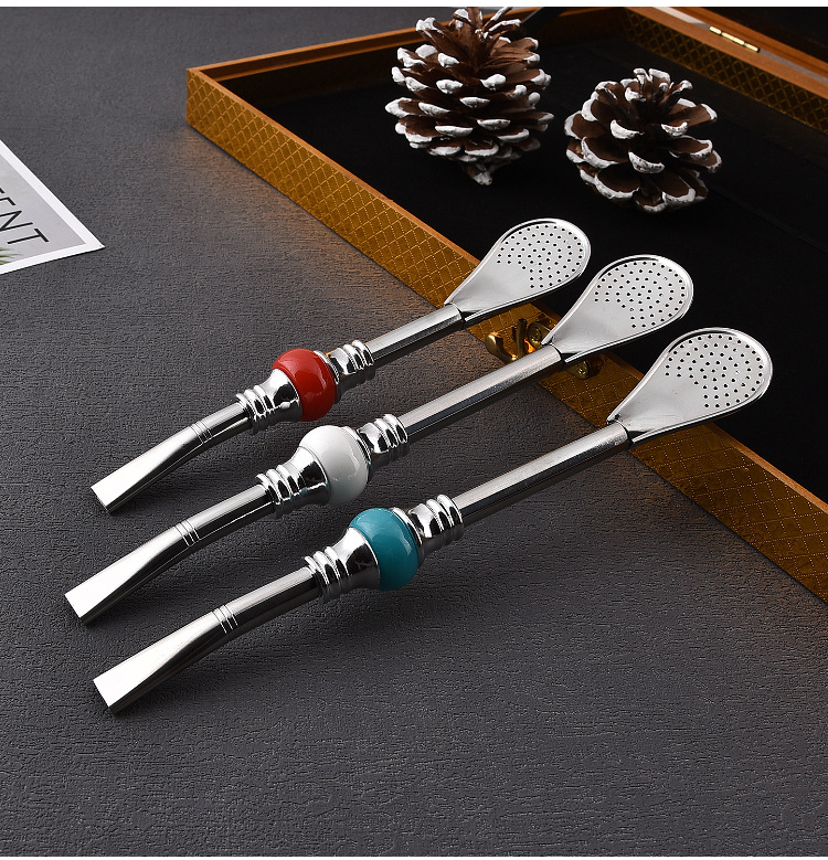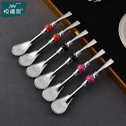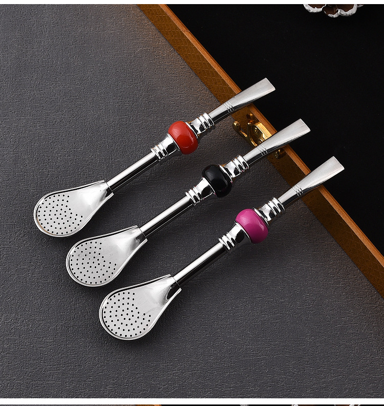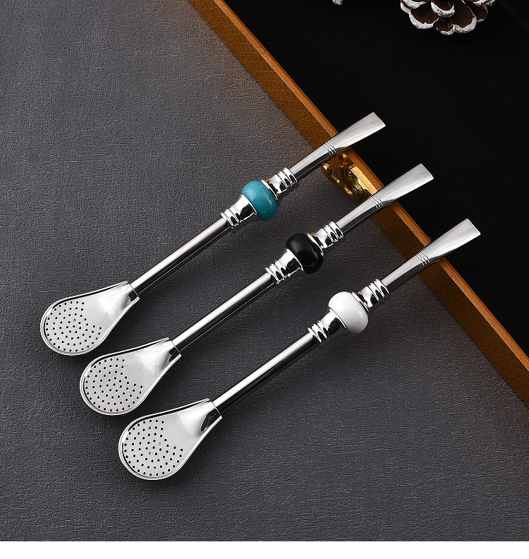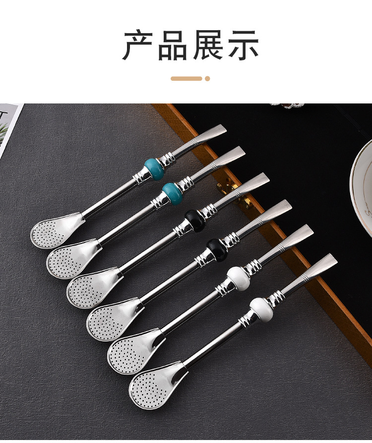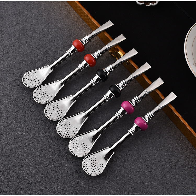 16cm19cm Stainless Steel Straw Stirring Spoon Spoon Strainer Fruit Teas Yerba Mate Straw Spoon