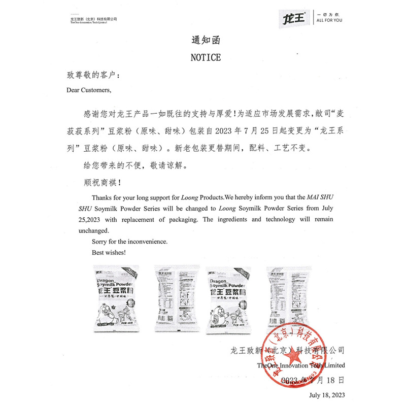 longwang maoxiao original flavor soybean milk powder 480g