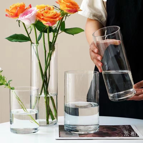 Minimalist glass vase, transparent straight-tube, water cultivation for rich and wealthy bamboo, lily awakening flowers, straight-tube
