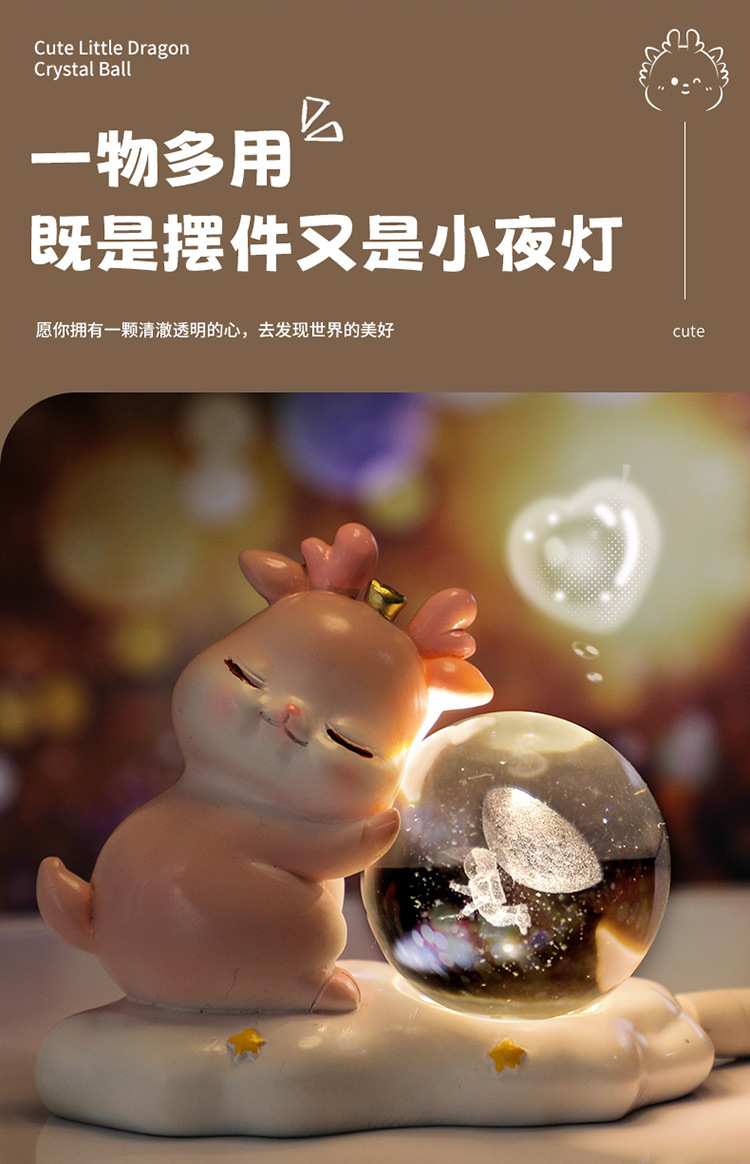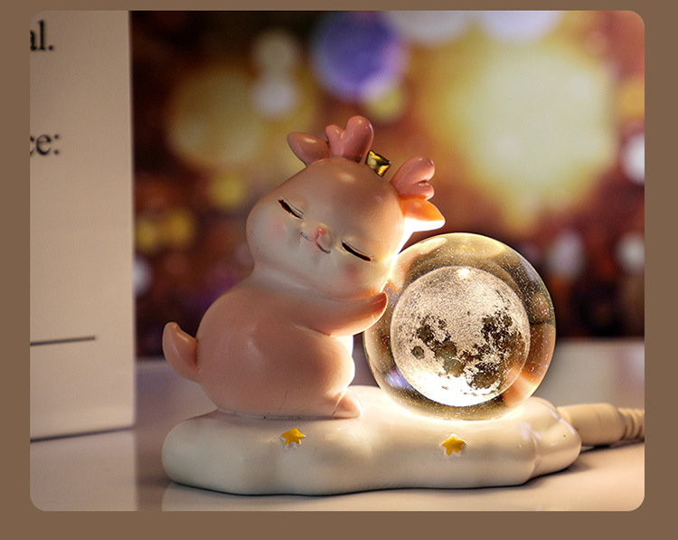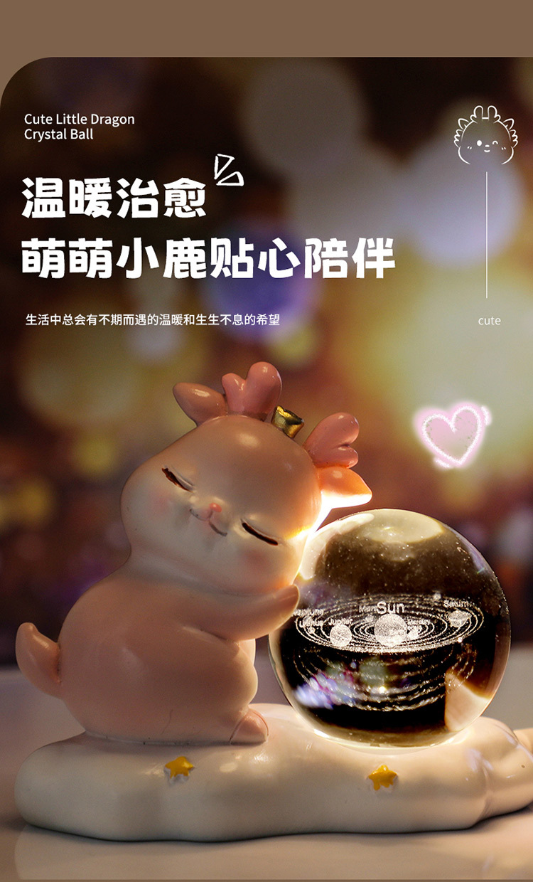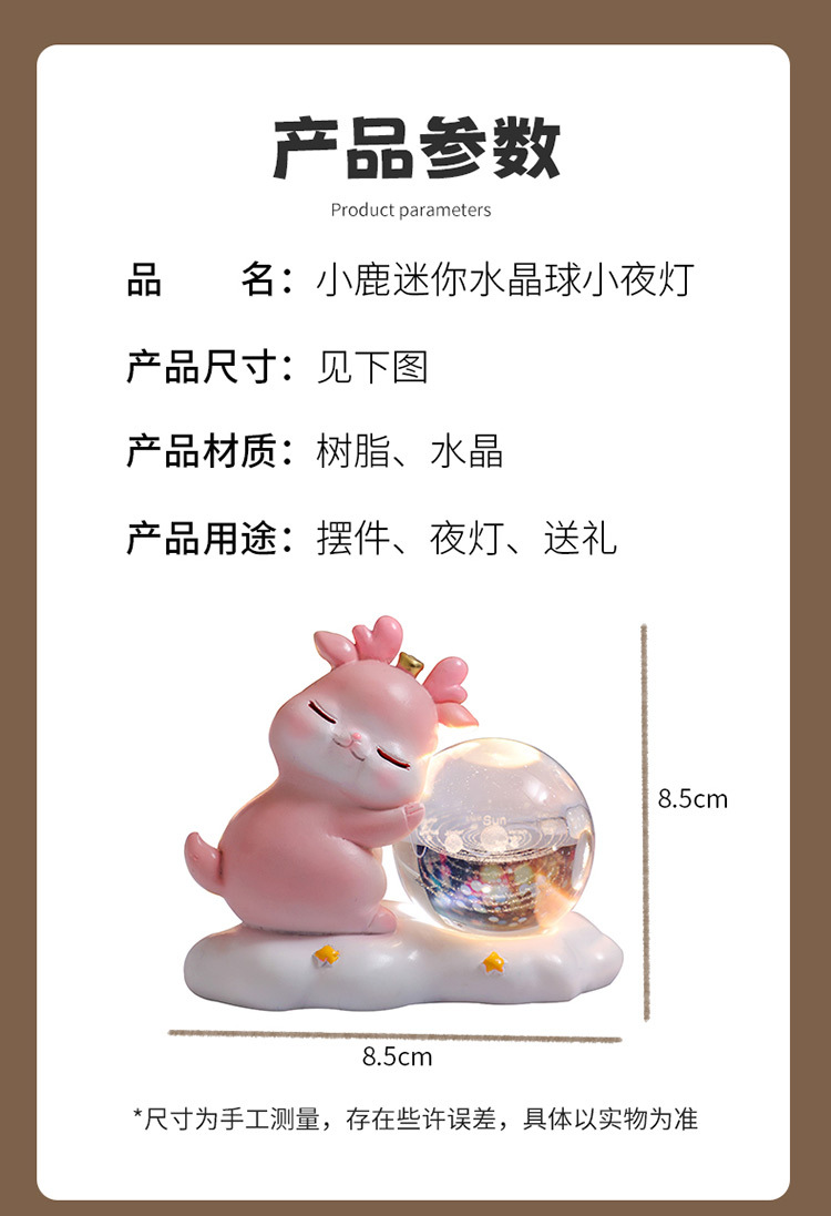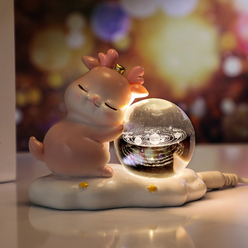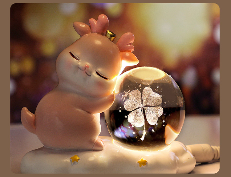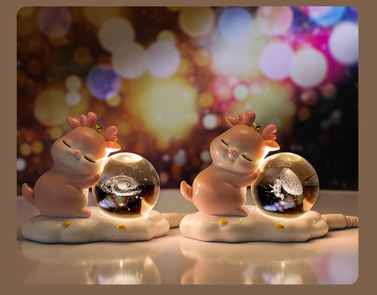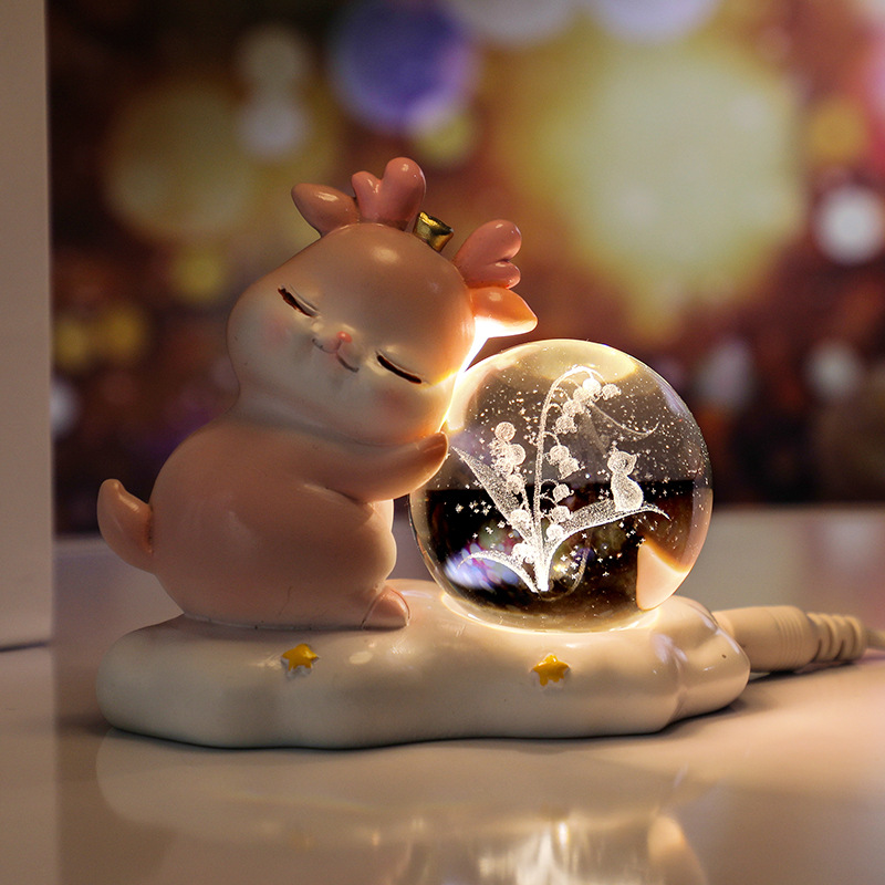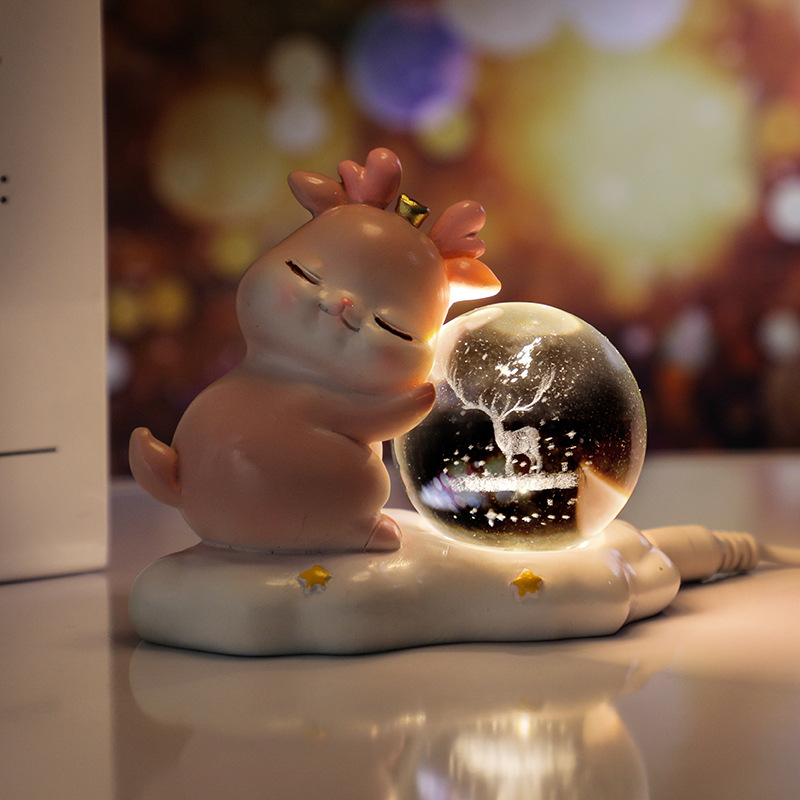 new deer small night lamp yilu you 3d carved crystal ball luminous desktop decoration valentine's day gift