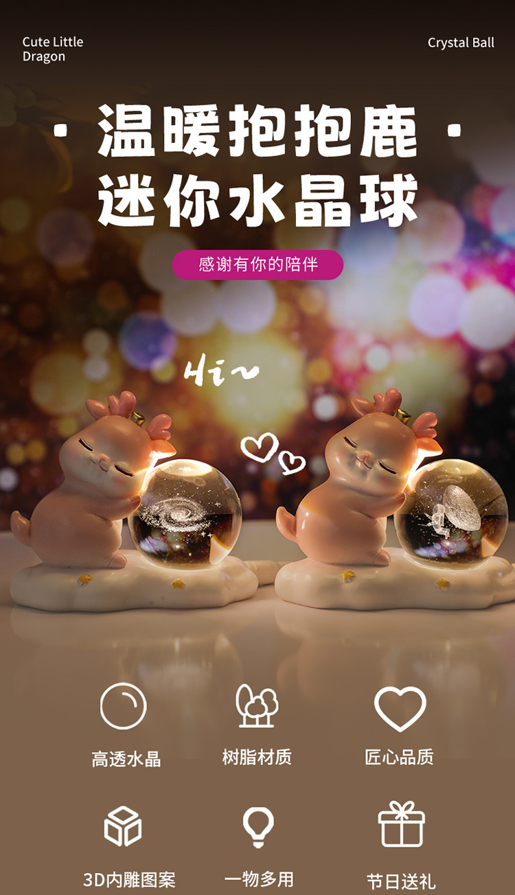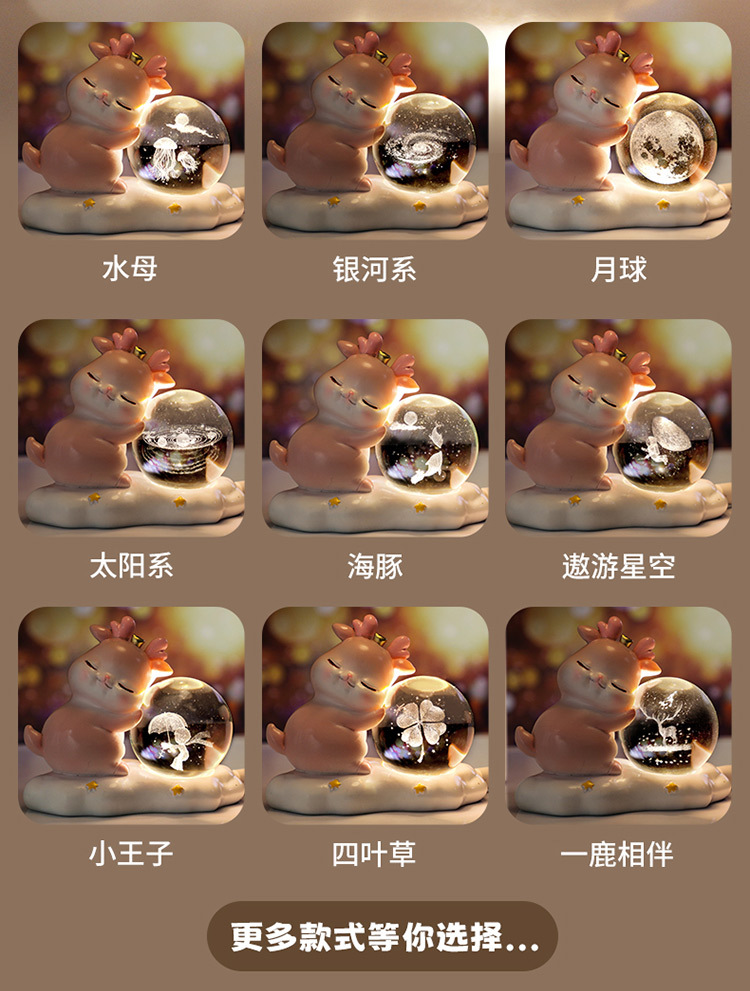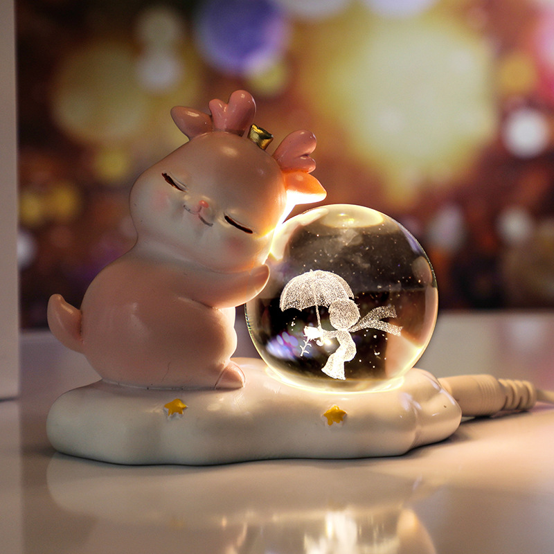 new deer small night lamp yilu you 3d carved crystal ball luminous desktop decoration valentine's day gift 中文版