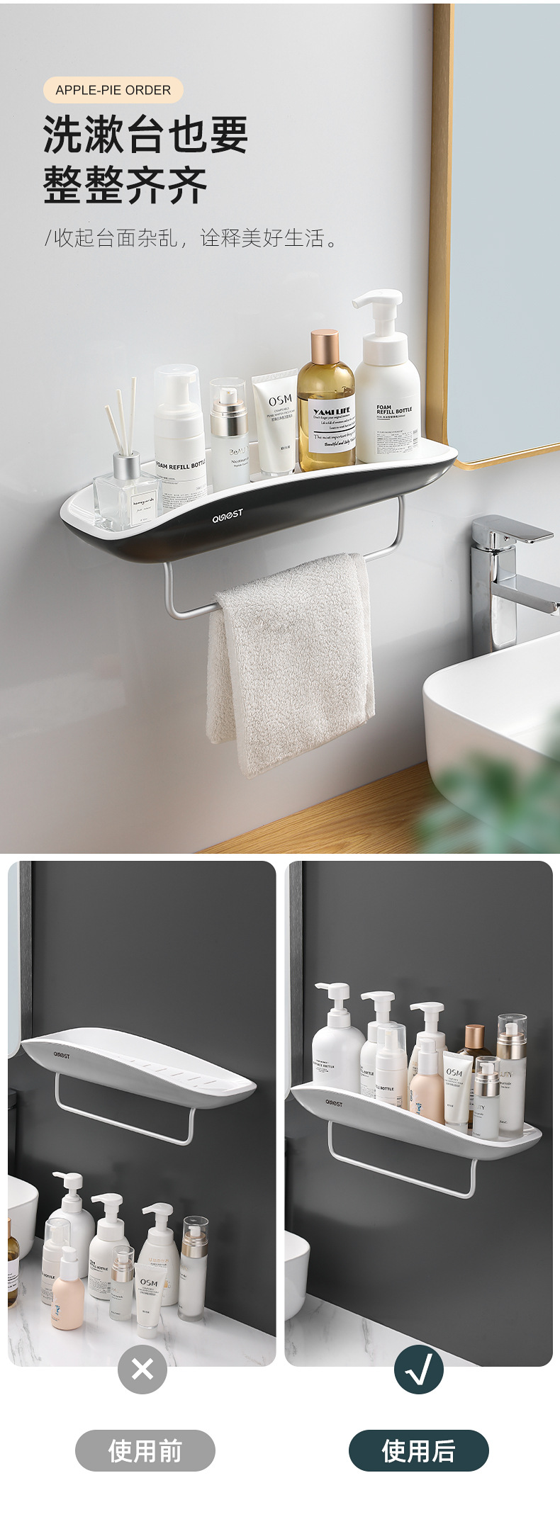 foreign trade exclusive wall-mounted plastic storage rack bathroom kitchen toiletries storage rack towel rack