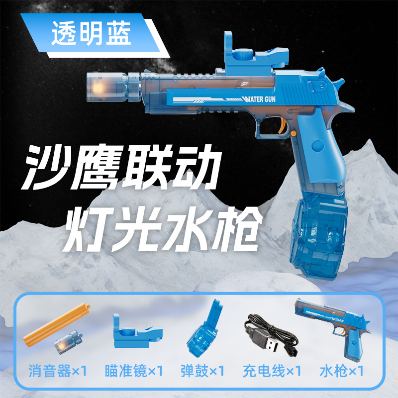 [with fire light] ice mouse electric water gun translucent blue