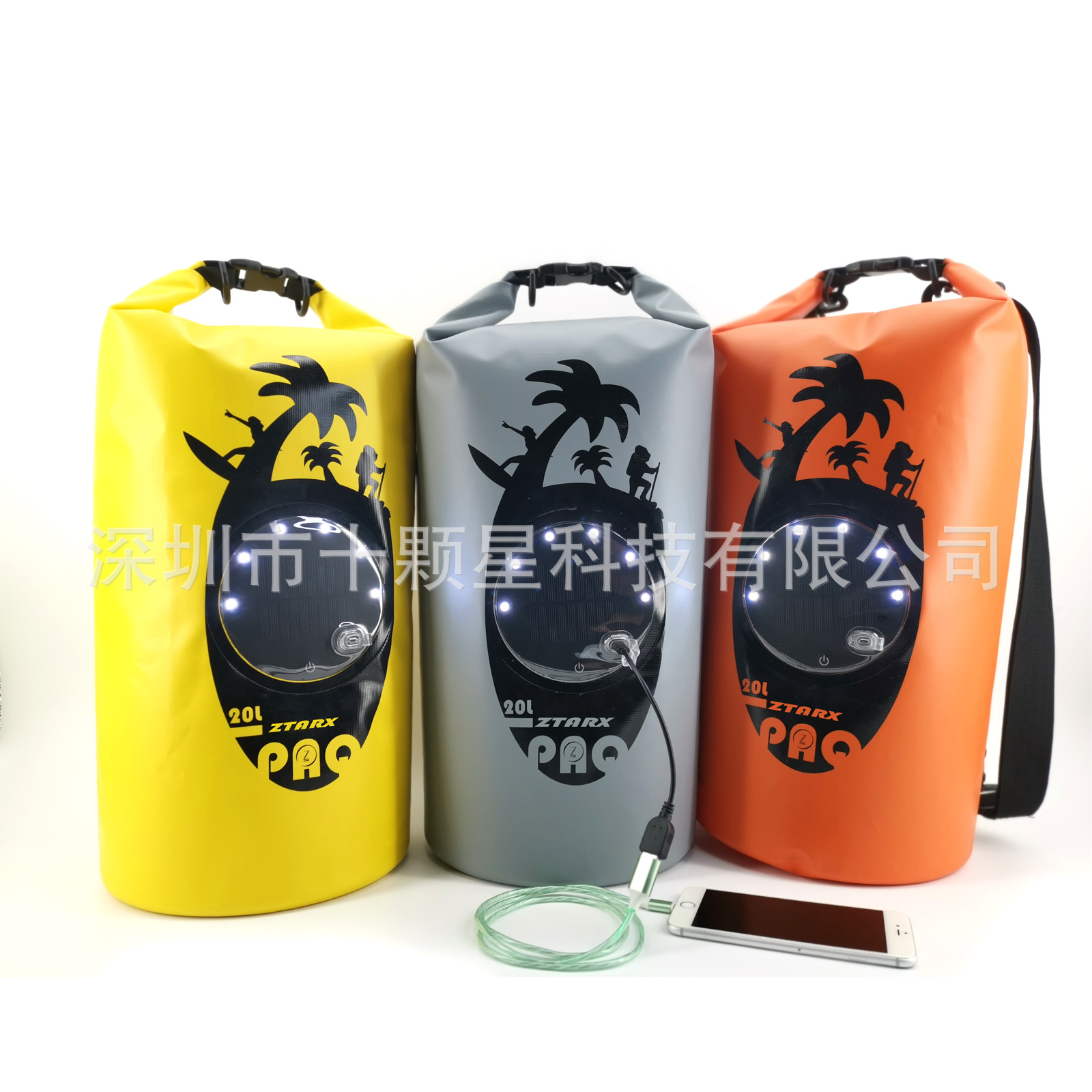 太阳能双面LED 手机充电 防水包