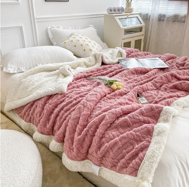 ins style berber fleece blanket new heavy weight solid color tower velvet double-layer thickened jacquard berber fleece blanket cover