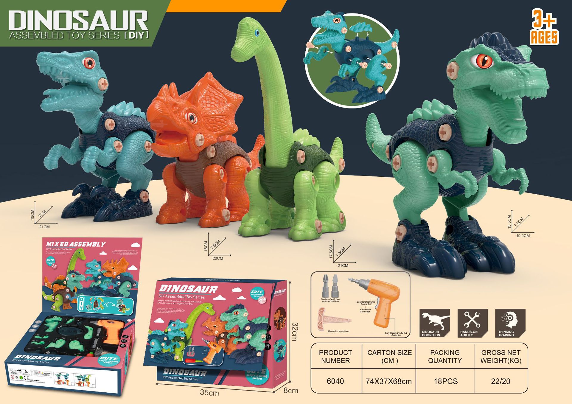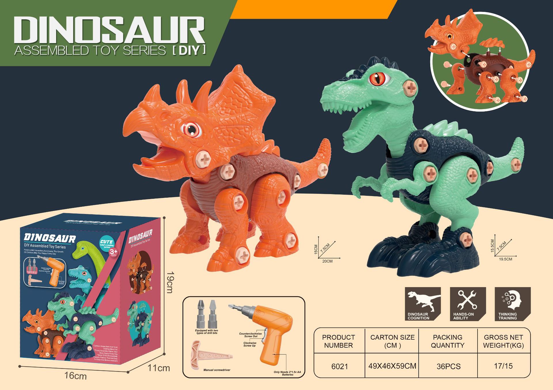 tyrannosaurus rex + raptor + wrist dragon ((three boxed with electric drill)