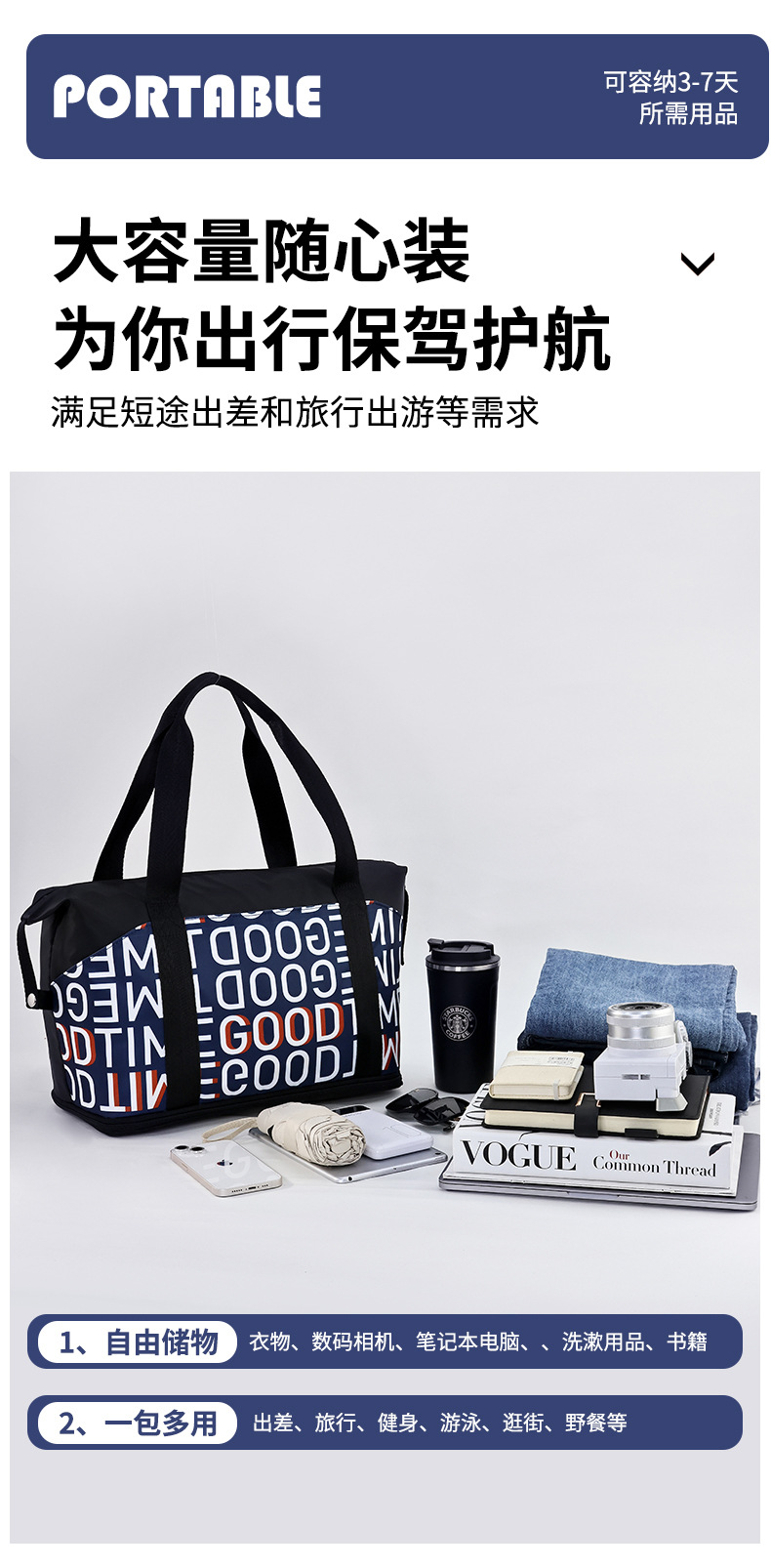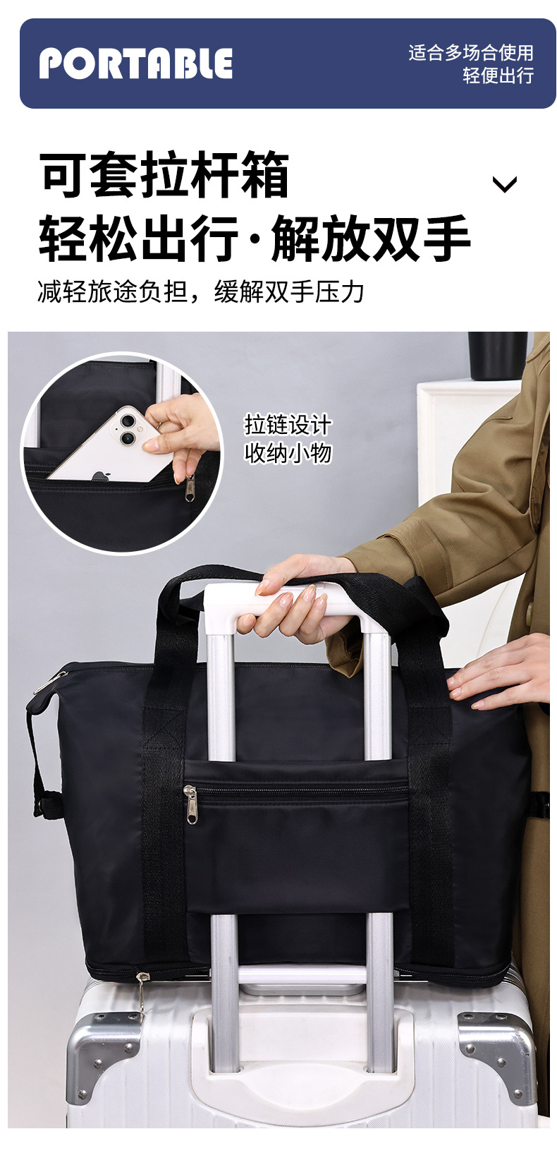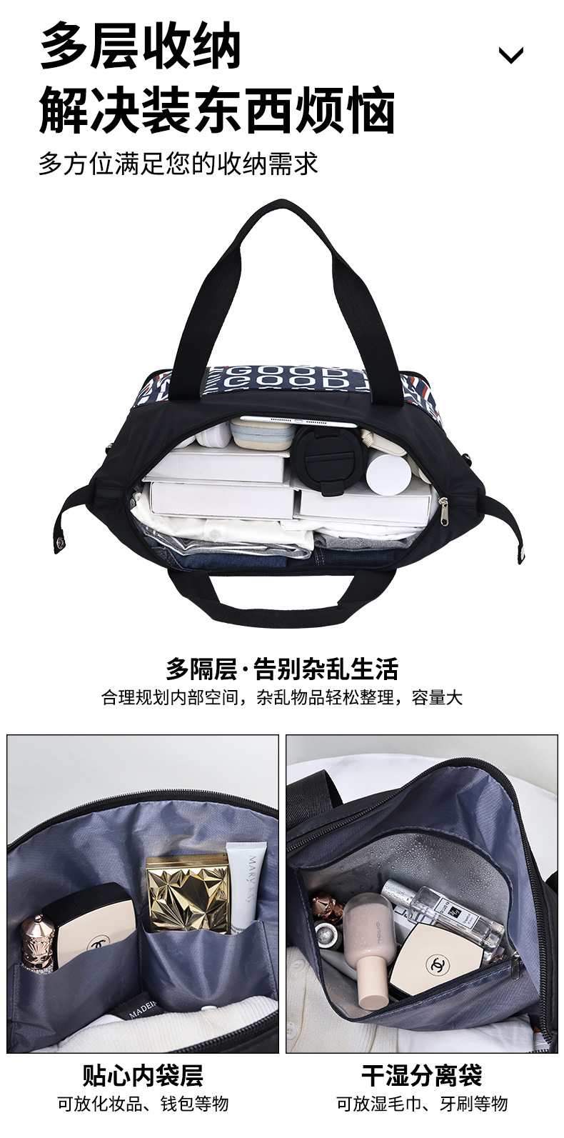 upgraded three pockets-dry wet separation scalable-thickened fabric (letters)