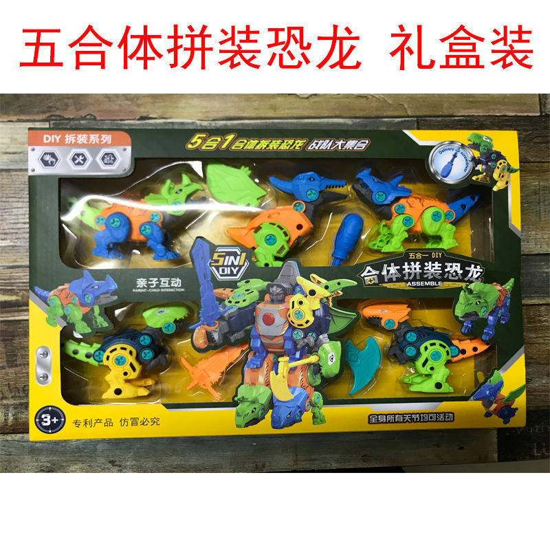 five dinosaurs can be combined (random color)