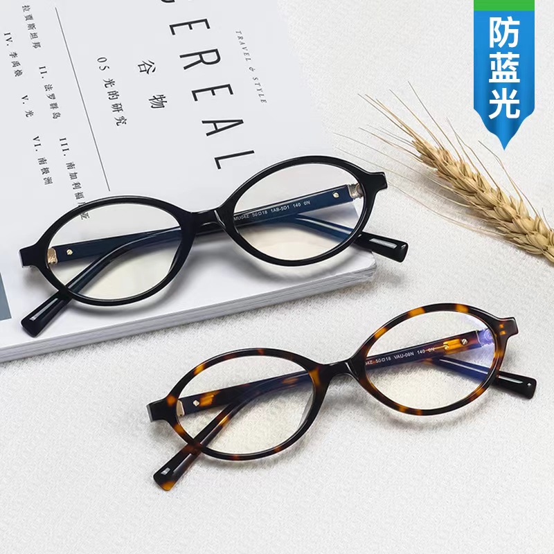 retro oval small frame anti-blue light glasses artistic niche trend plain glasses tiktok same style full frame