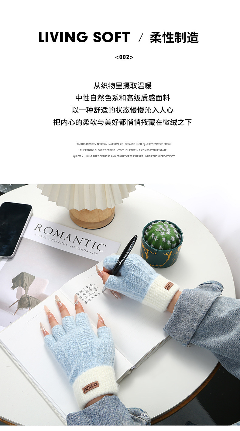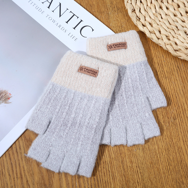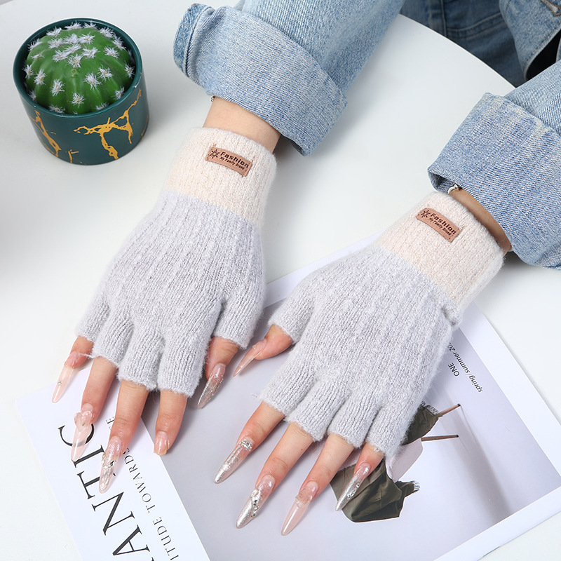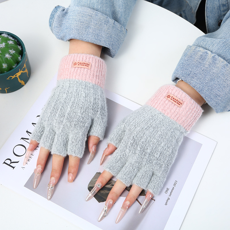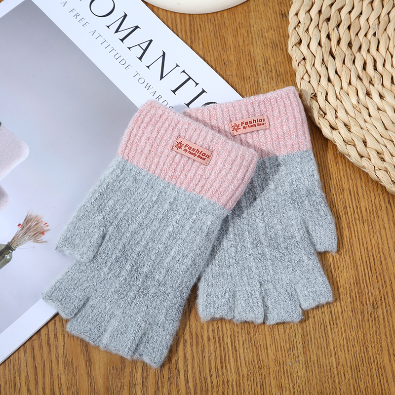 stitching half finger gloves [light gray + pink]]