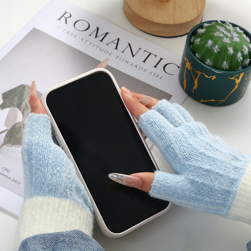 stitching half finger gloves [light blue + white]]