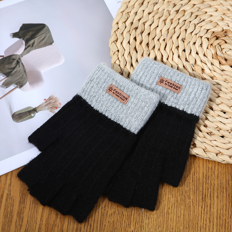 stitching half finger gloves [black plus gray]]