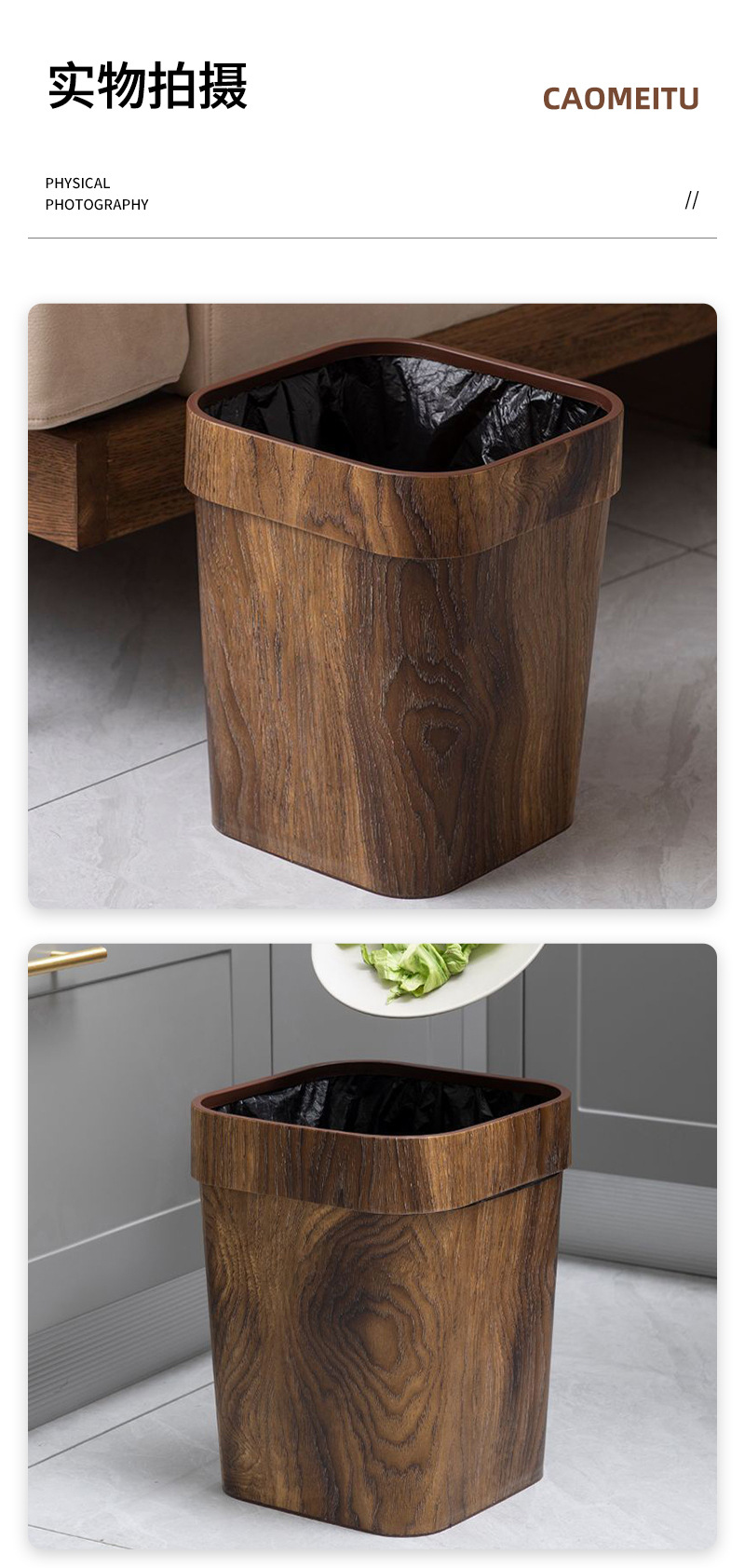 8003 imitation wood grain clamping ring trash can 12l