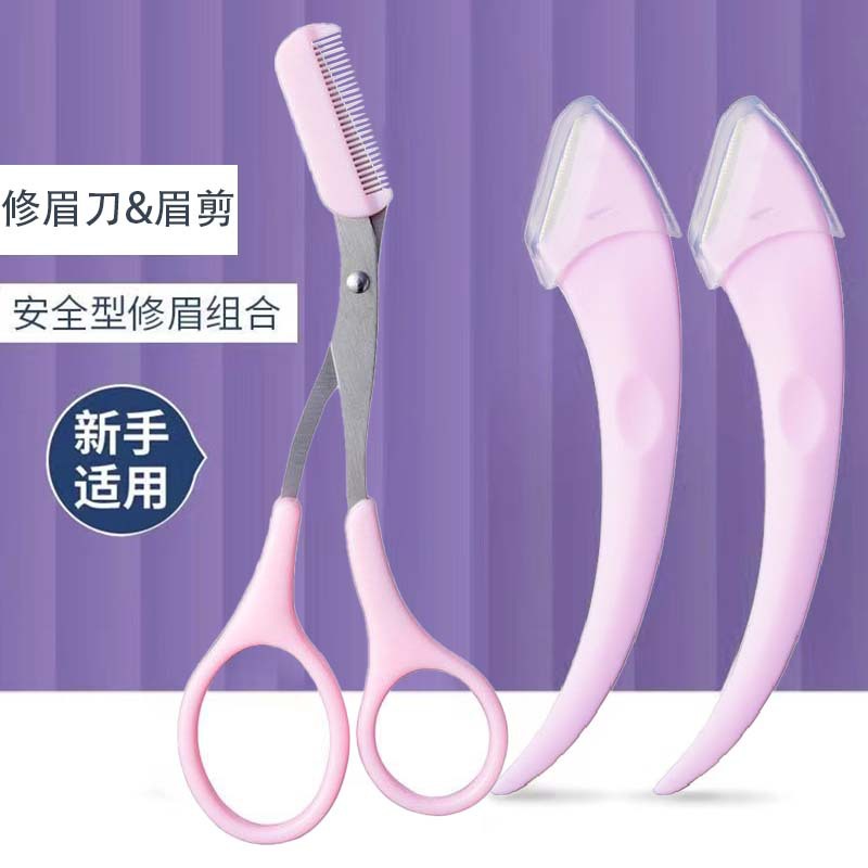 pink opp packaging + eye tweezer + comb eyebrow trimmer + eye-brow knife