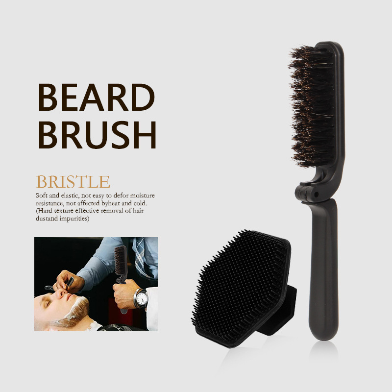 Cross-Border Folding Beard Comb Men's Care Pig Bristle Modeling Beard Comb Portable Cleaning Facial Brush Hair Cutting and Broken Hair Sweep