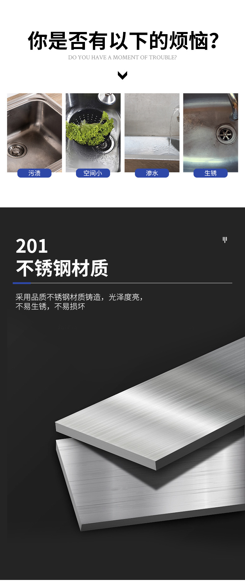 foreign trade exclusive stainless steel sink band plate sink vegetable washing sink water receiving scullery kitchen stainless steel accessories