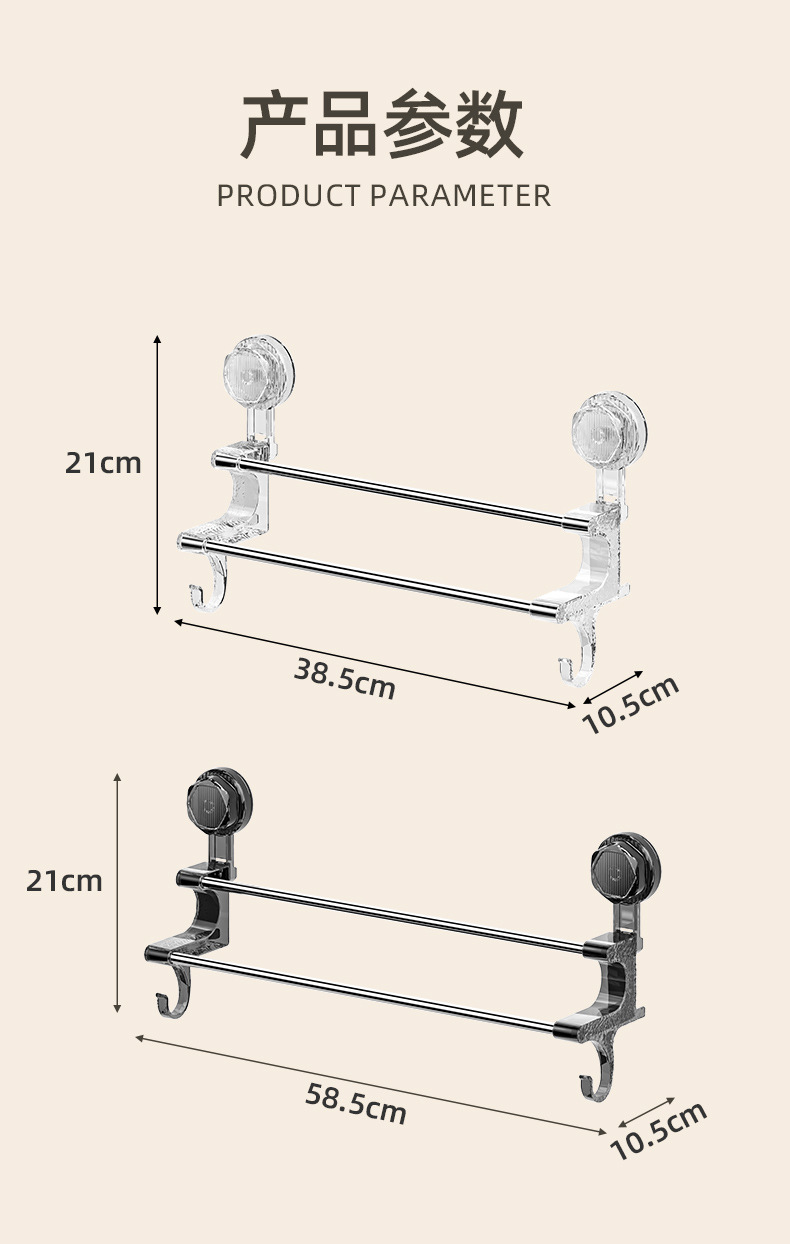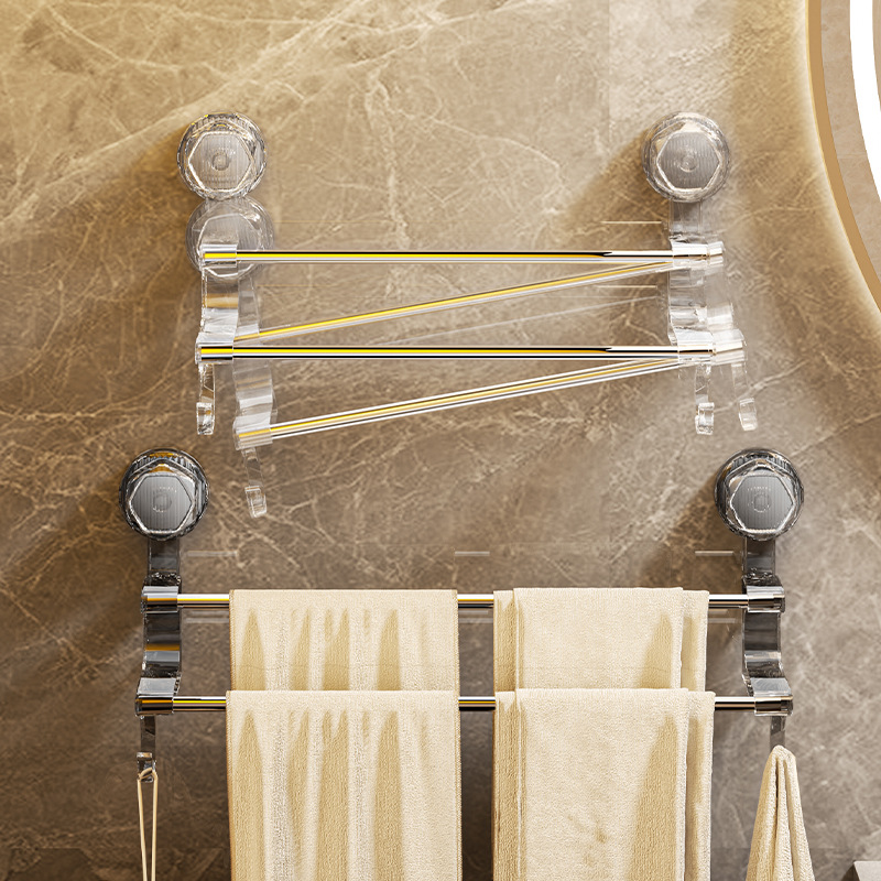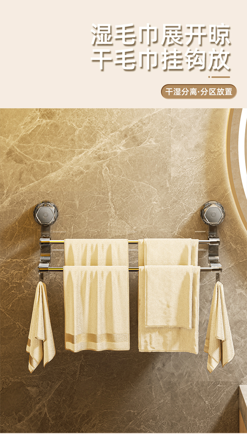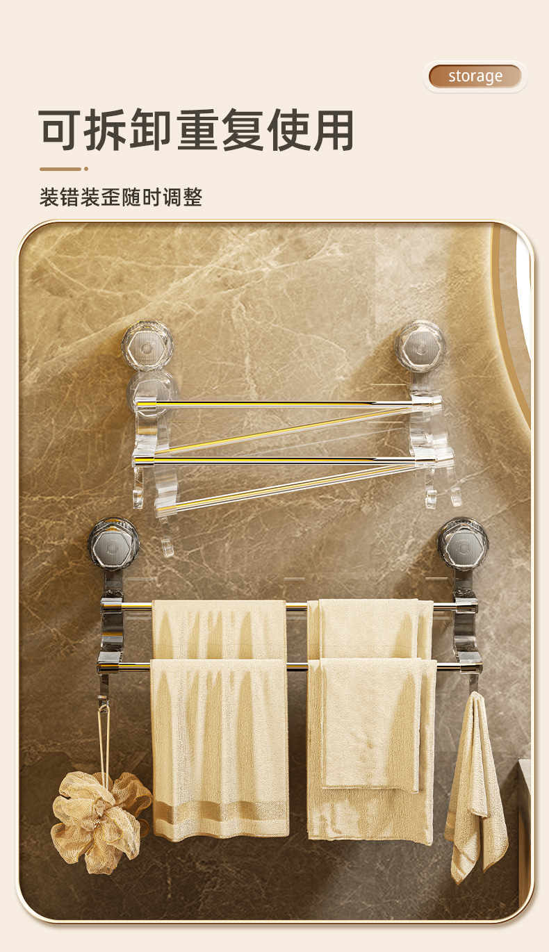 suction cup towel rack bathroom towel bar household light luxury towel slippers storage rack hook double rod towel rack