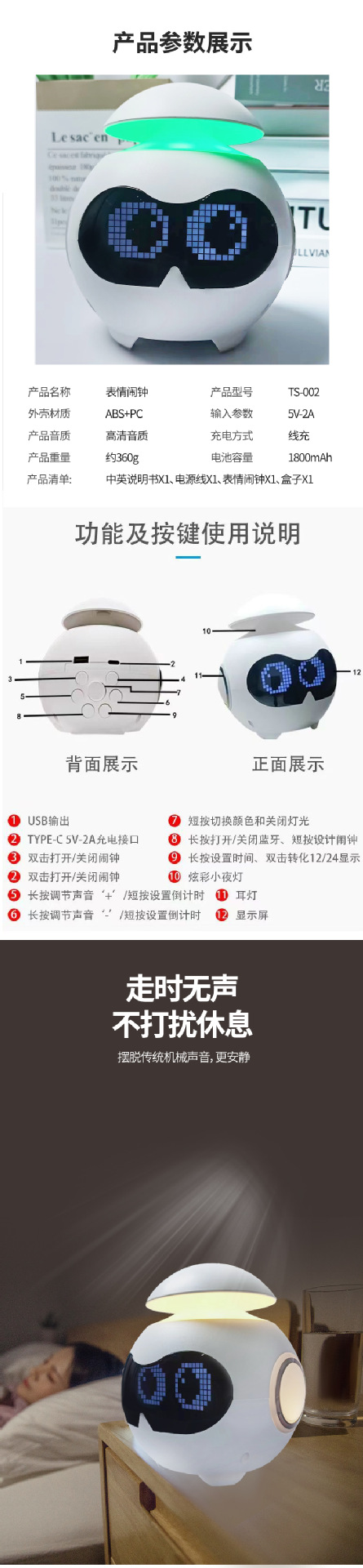cross-border hot emoji alarm clock small night lamp creative diy custom bluetooth audio all-in-one light cartoon clock atmosphere light 中文版
