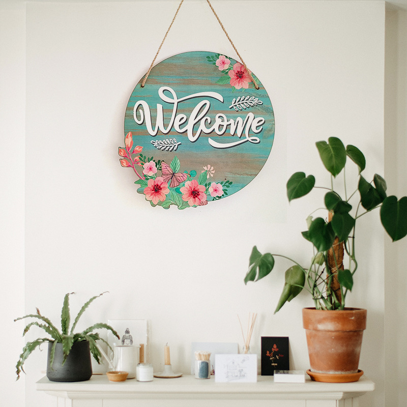 wooden hanging wooden welcome decorative doorplate hanging simulation green plant hanging painting farmhouse wall decorations decorations 中文版
