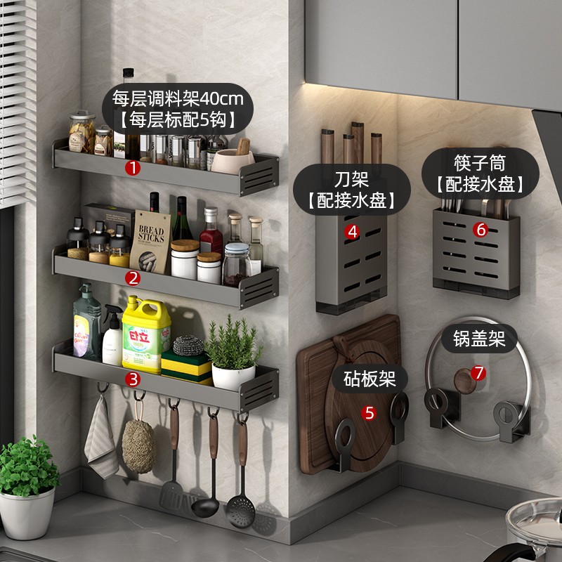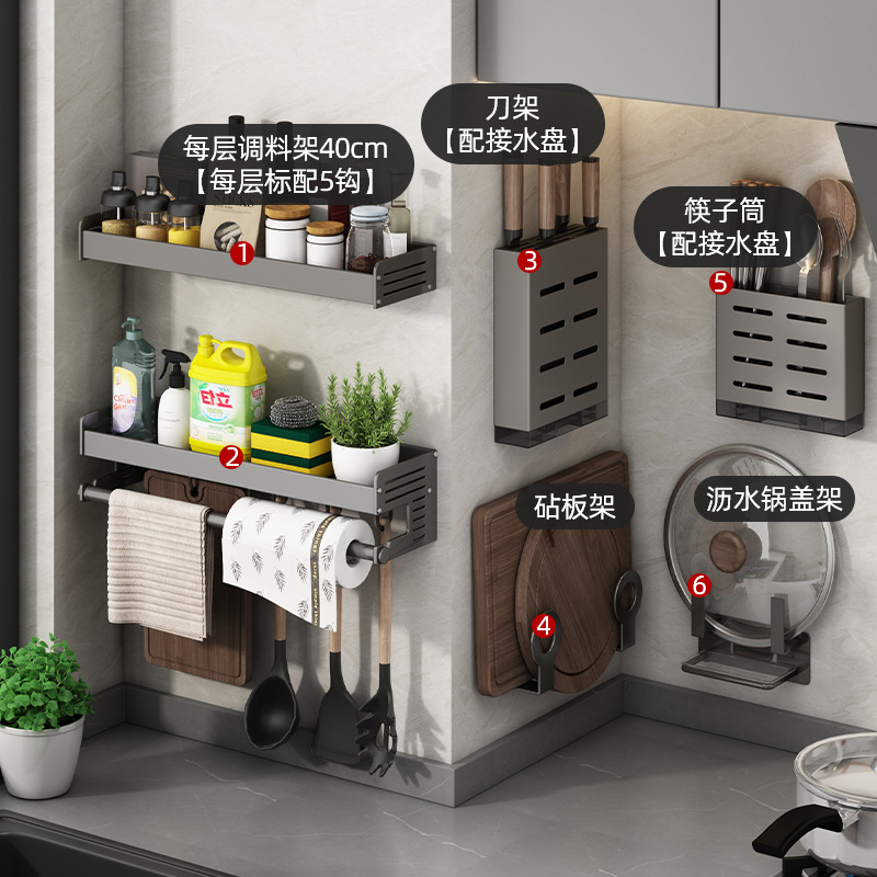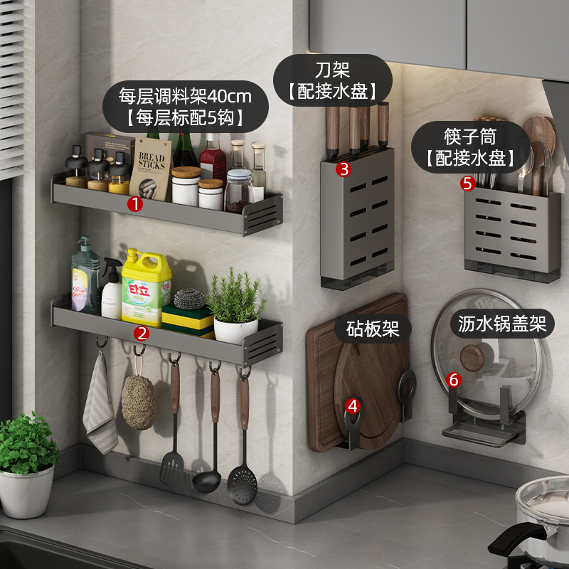 gun gray knife box + pot cover rack + chopping board rack + chopsticks holder