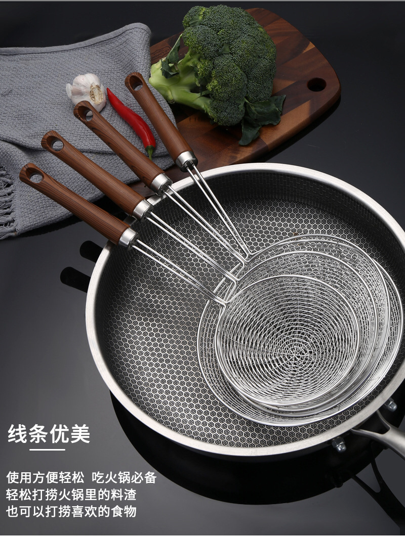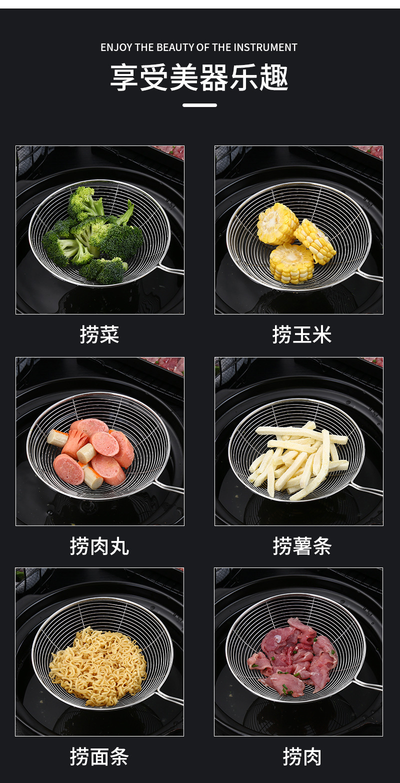 factory customized stainless steel colander scoop noodles scoop up dumplings line leakage household drain oil strainer kitchen hot pot screening mesh 中文版