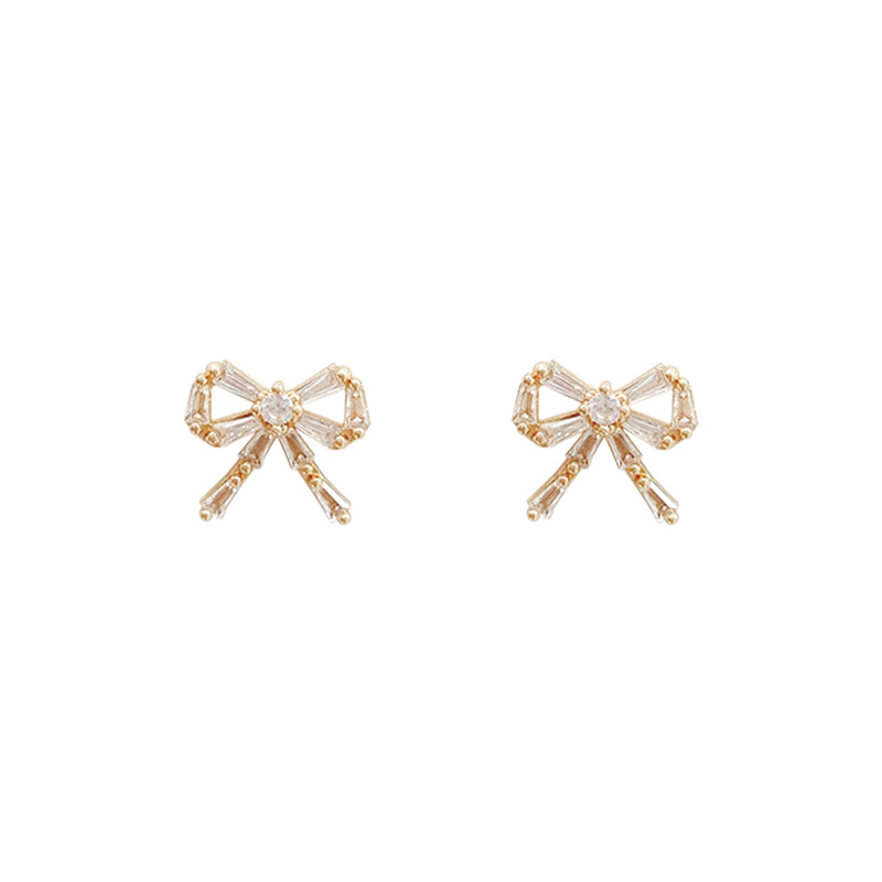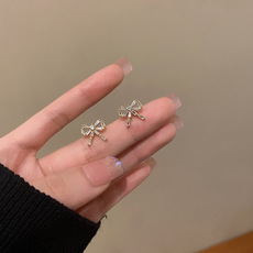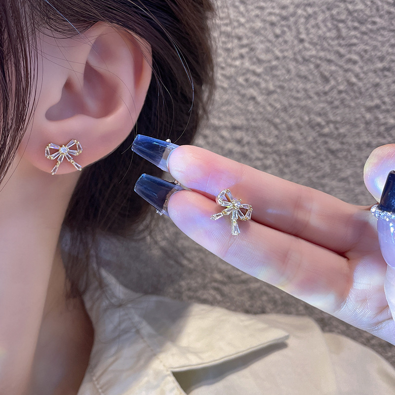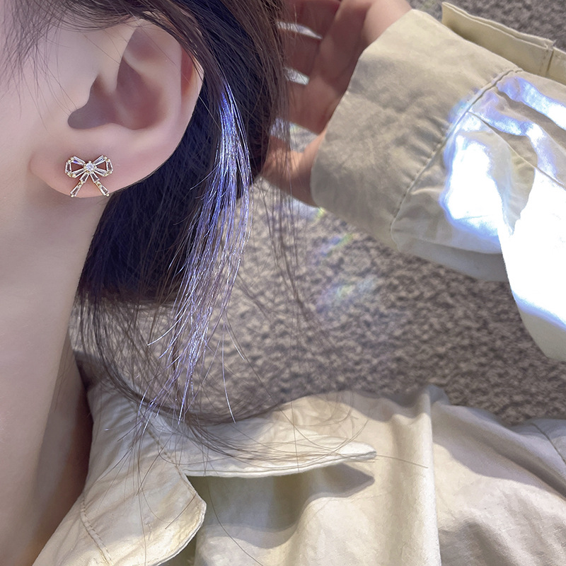 silver needle super flash bow zircon stud earrings for women light luxury compact temperamental internet influencer earrings cold wind ear rings wholesale 中文版