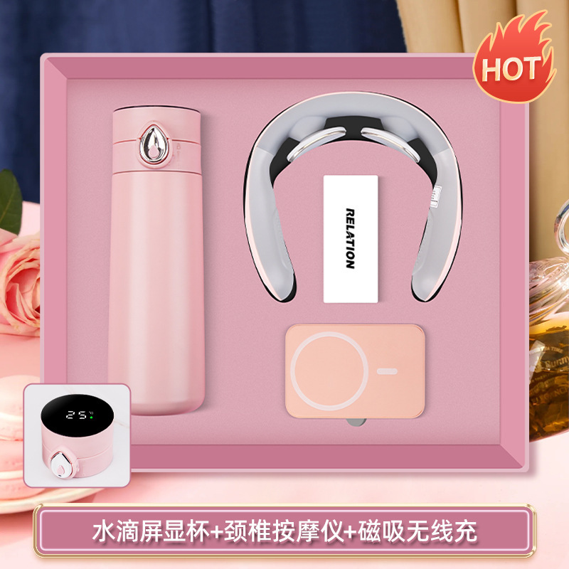 water drop screen cup + cervical spine massage instrument + bracket power bank-pink