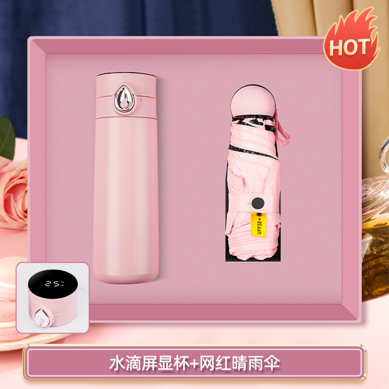 water drop screen cup + internet sensation umbrella-pink