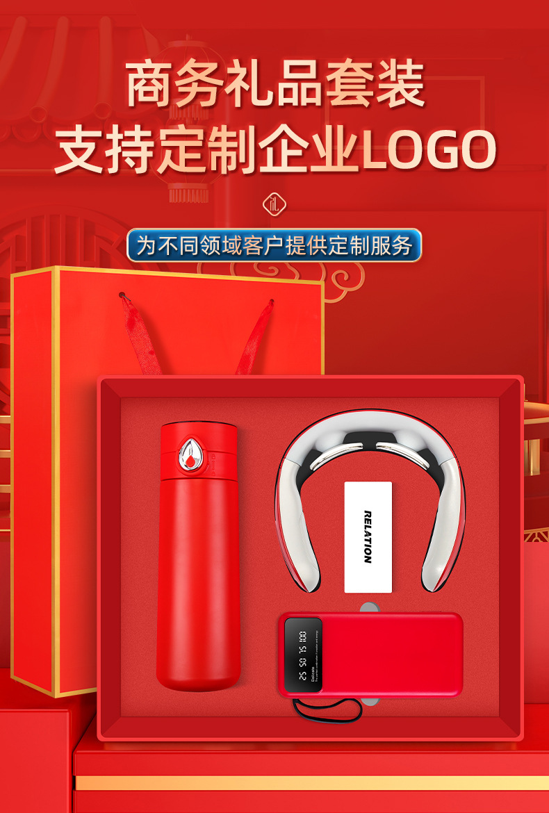 water drop screen cup + cervical spine massage instrument + bracket power bank-red