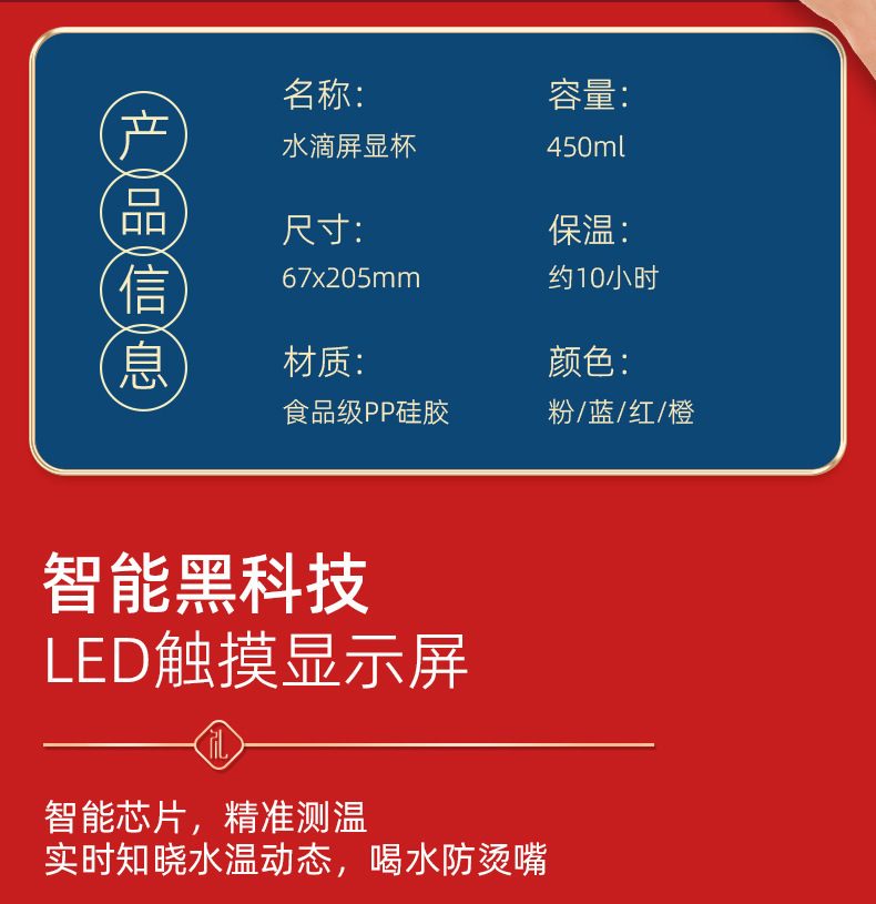 water drop screen cup + magnetic suction power bank-red
