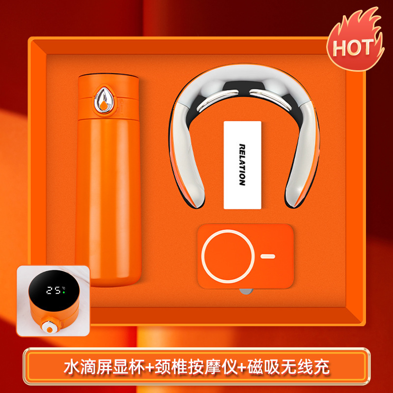 water drop screen cup + cervical spine massage instrument + magnetic suction power bank-orange