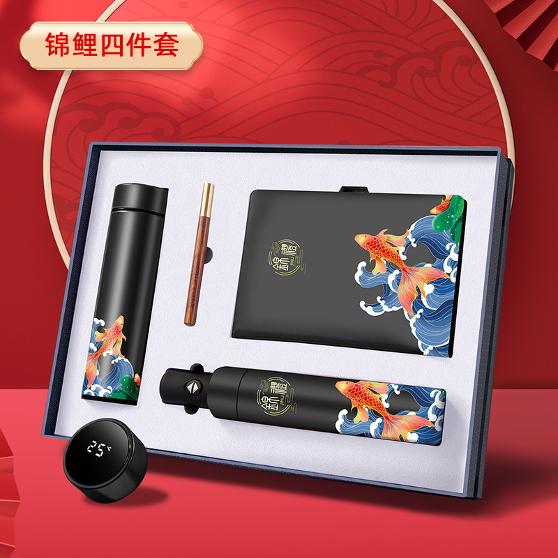 [black koi five-piece set] water cup + book + pen + umbrella + u disk