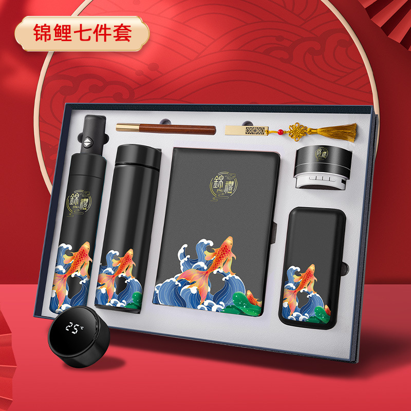 [red koi seven-piece] water cup + book + pen + umbrella + u disk + power bank + audio