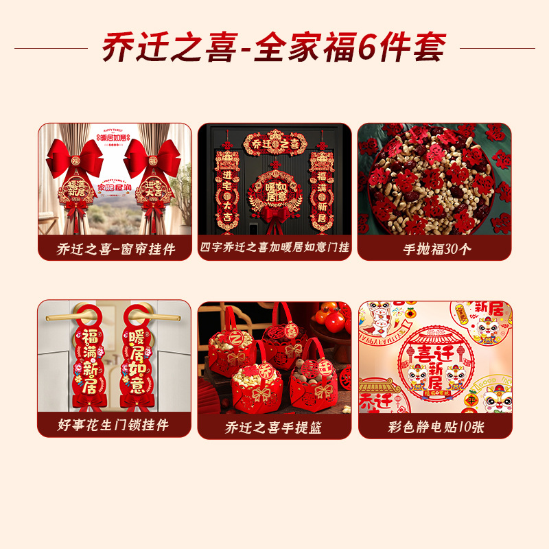 bright couplet-colorful housewarming happiness + housewarming happiness hanging lotus + door-god pairs