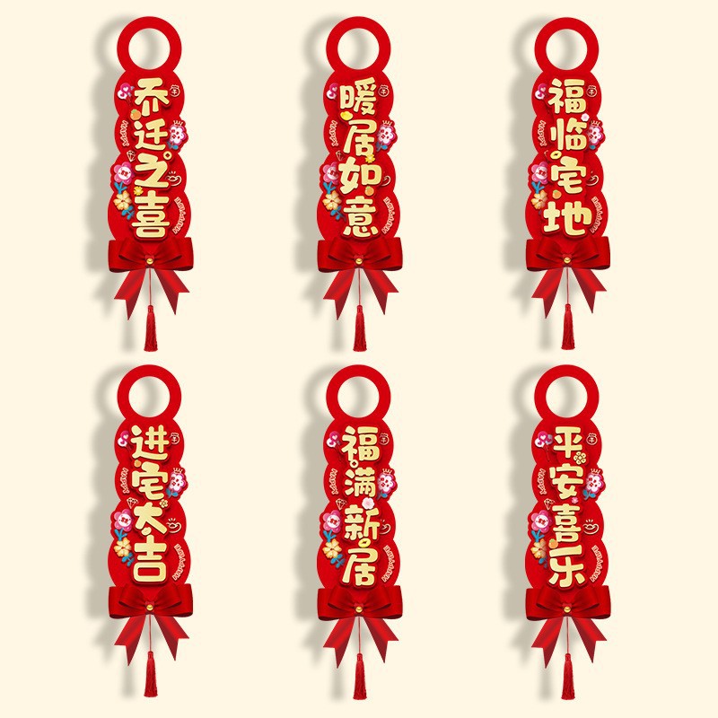 bright couplet-housewarming happiness + bow fu character pendant + door-god pairs