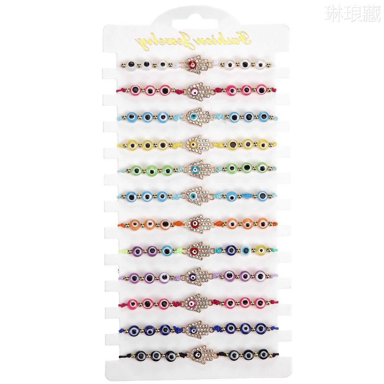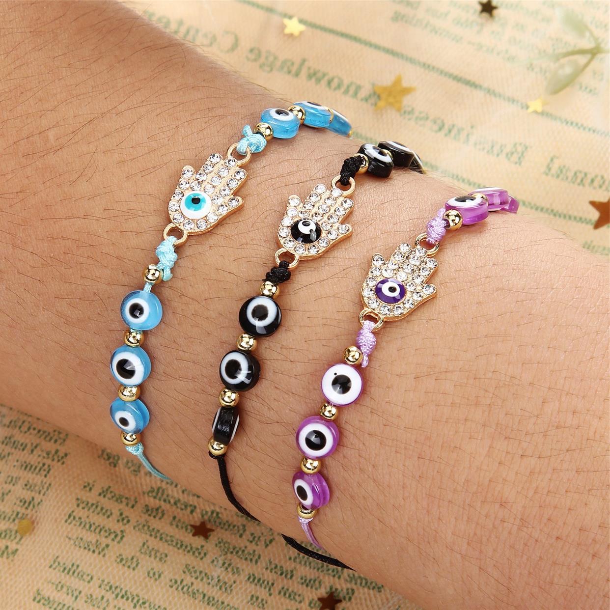 european and american amazon hot sale evil eye bracelet color eye beads adjustment suit carrying strap palm bracelet with diamond 中文版