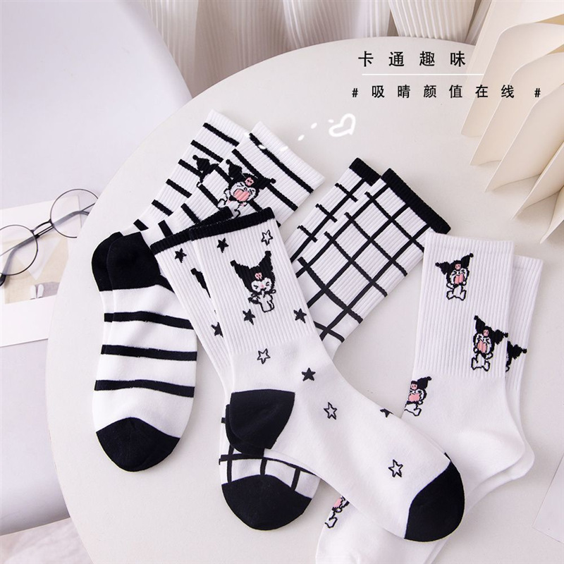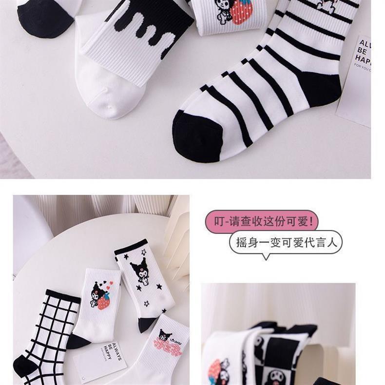 clow m socks autumn socks women's long ins fashionable all-match good-looking mori style middle tube student white cute