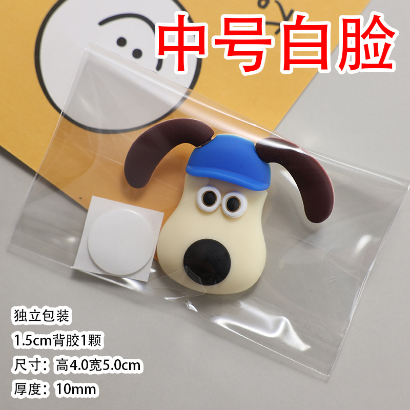 soft glue: small size flying wallace and gromit white face 2.2x2.5cm