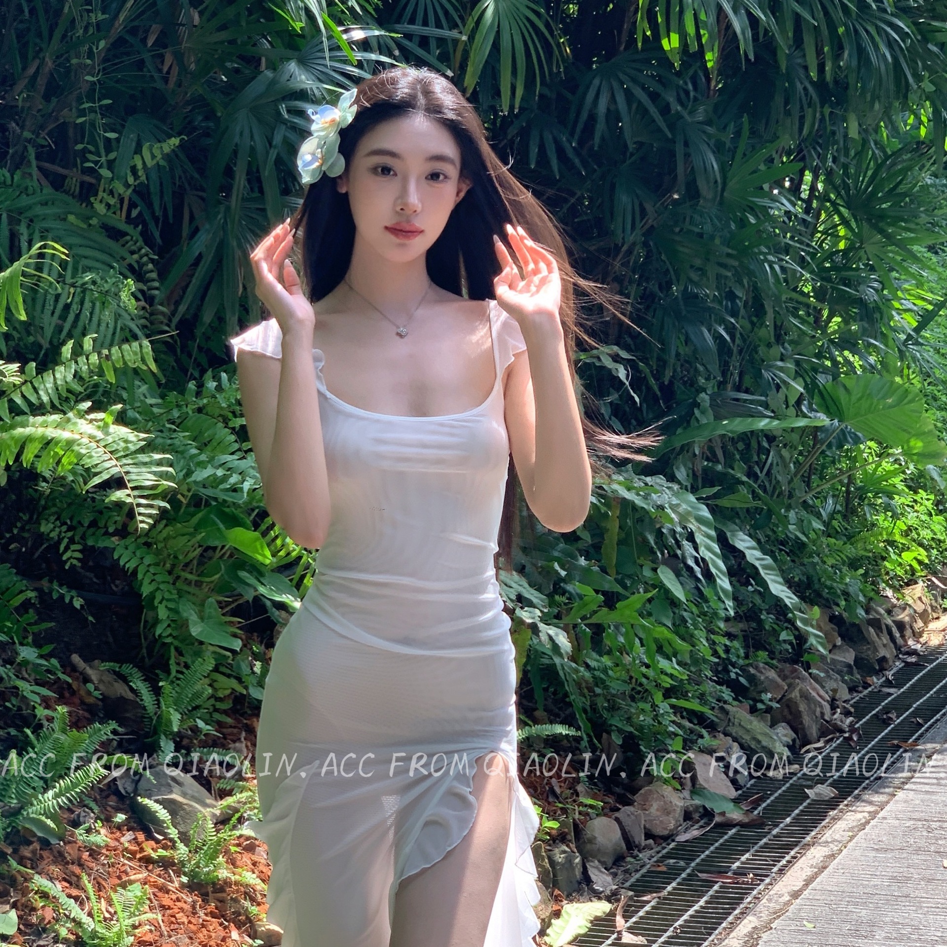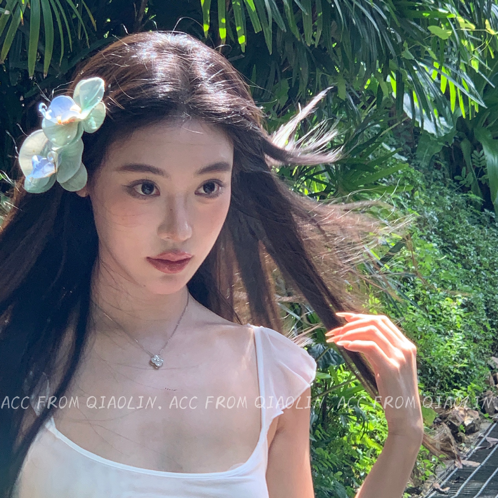 white green phalaenopsis hair clip-pu