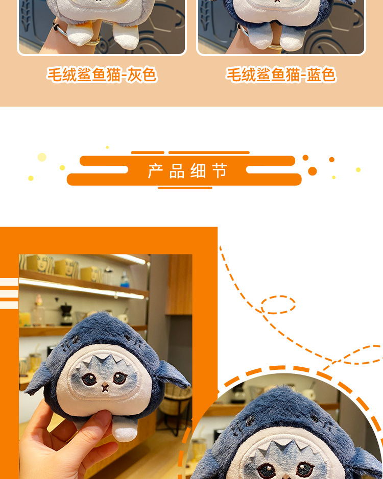 plush shark cat-gray