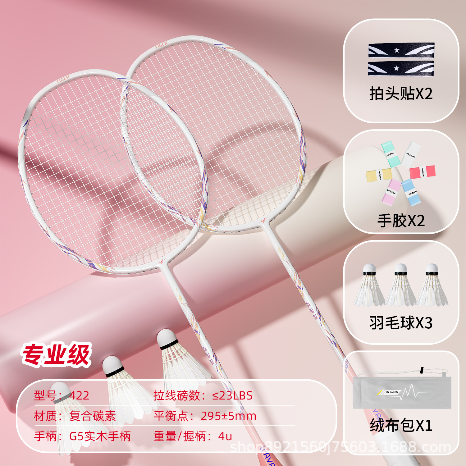 double racket-gf422 [composite carbon 4u] get 3 balls + gray velvet bag + grip tape + racket head stickers