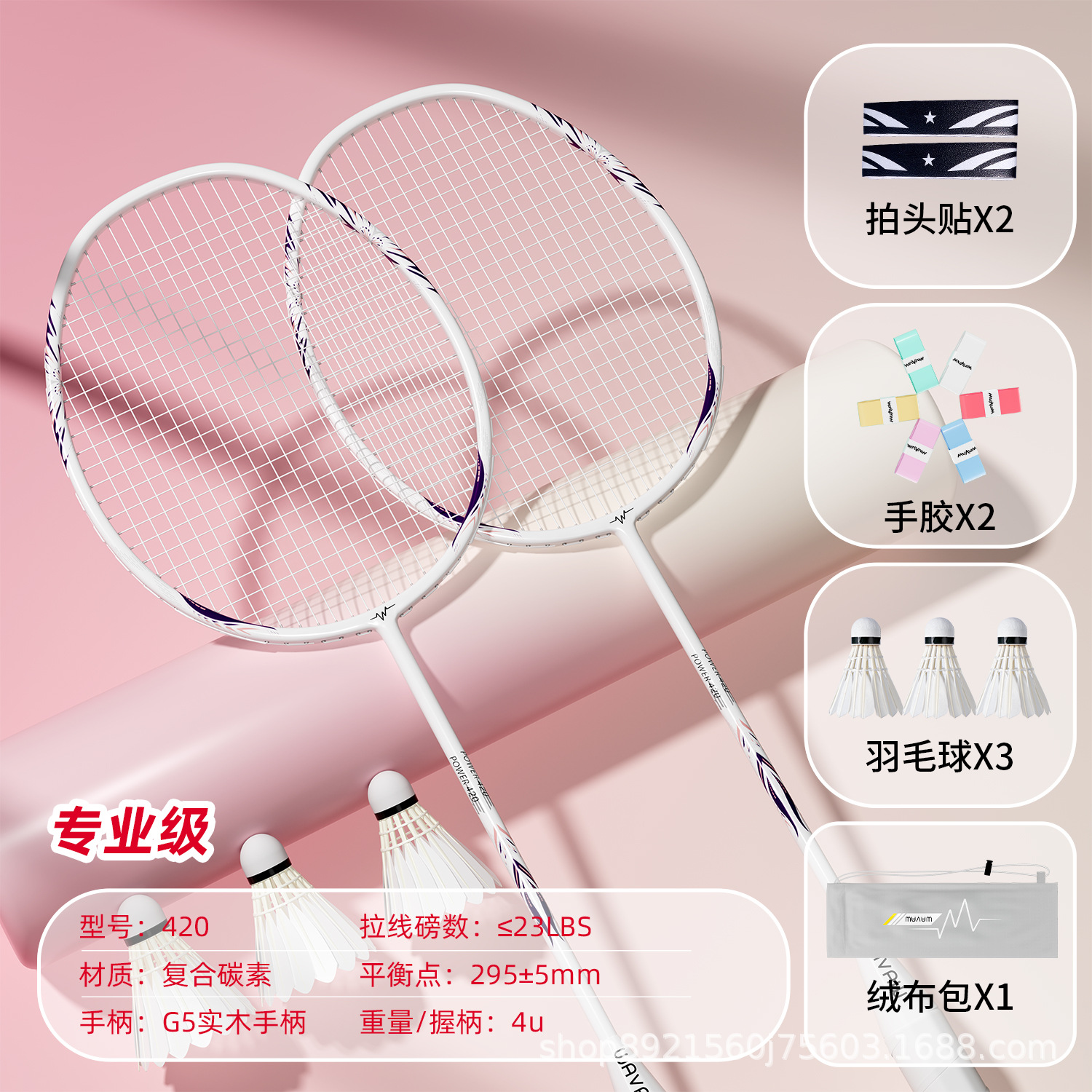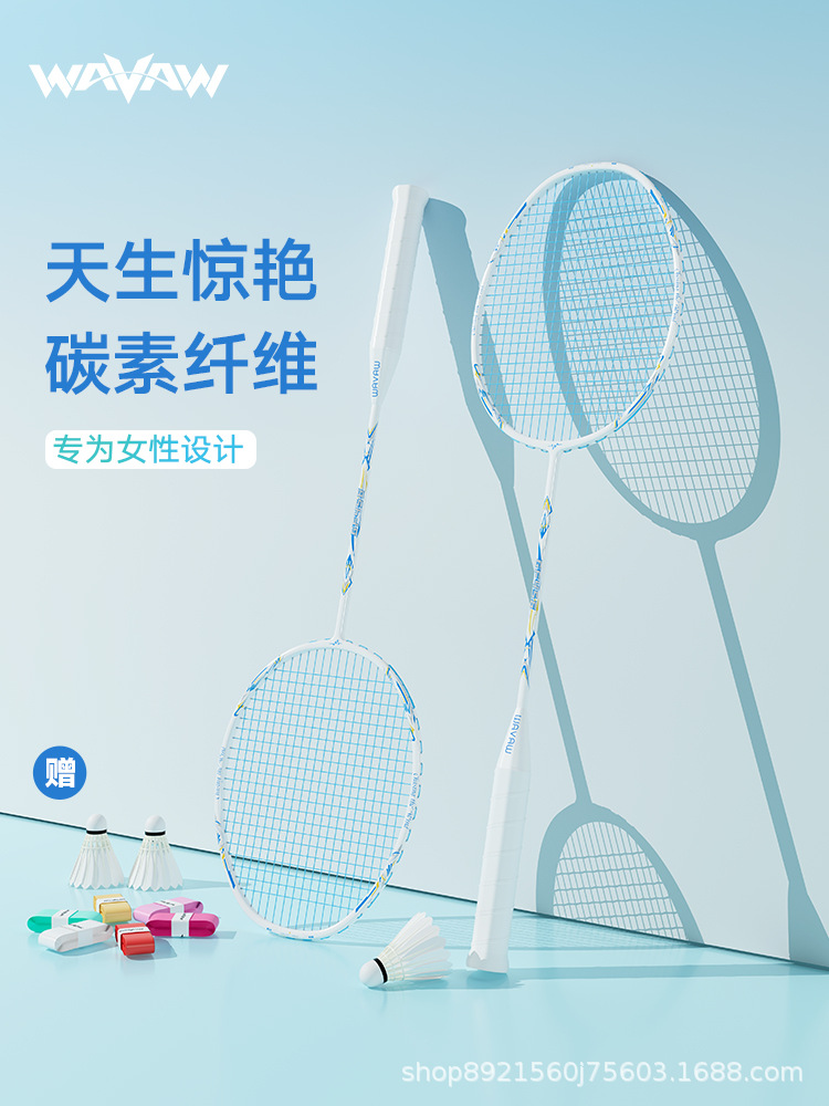 double racket-w90 white【 composite carbon 4u] get 3 balls + gray velvet bag + grip tape + racket head stickers