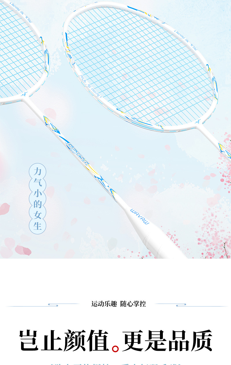 single shot-cf455 falling cherry [full carbon 5u] get 3 balls + gray velvet bag + grip tape + racket head stickers