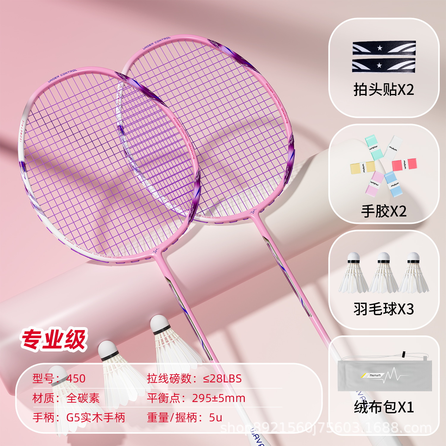 double racket-gf450 xuanyue [imported carbon 5u] get 3 balls + gray velvet bag + grip tape + racket head stickers