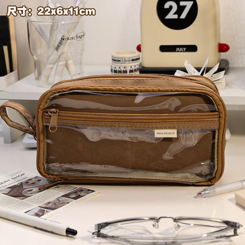 transparent pencil case/brown
