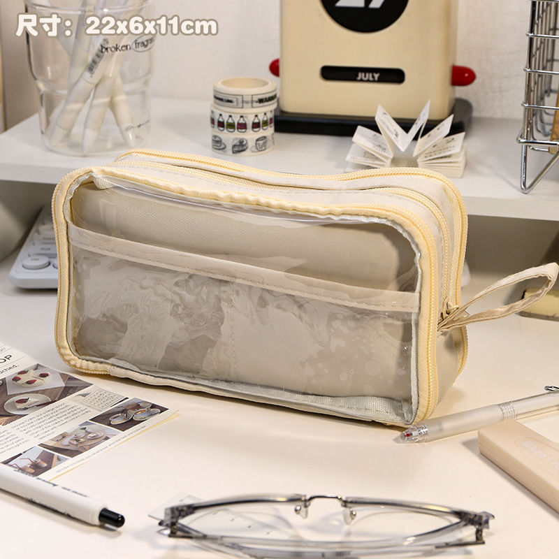 transparent pencil case/beige